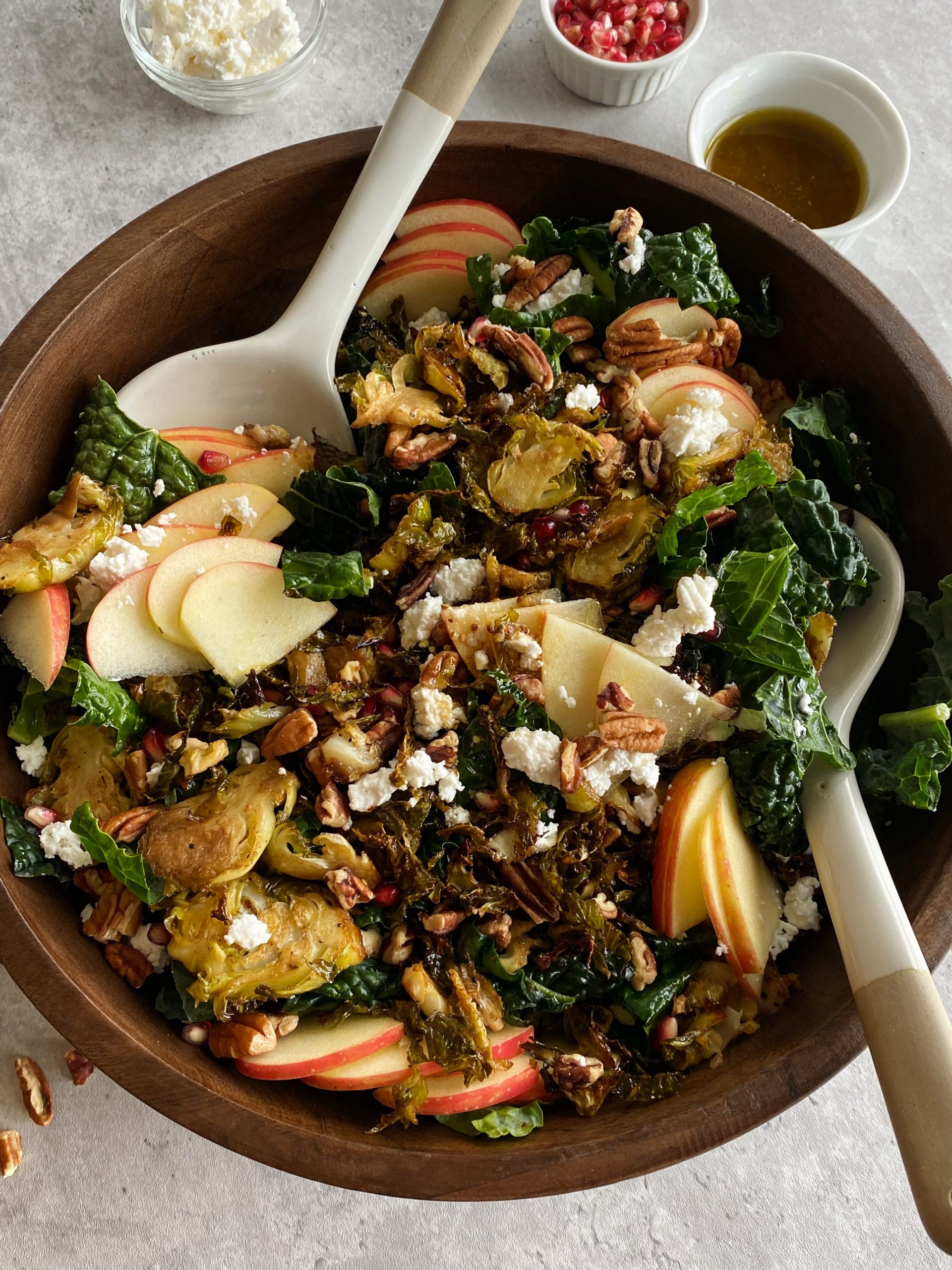 If you plan to make the maple balsamic brussels sprouts, double the batch to throw some onto this delicious fall harvest salad. It’s loaded with nourishing ingredients and truly packs in all the best fall flavors.