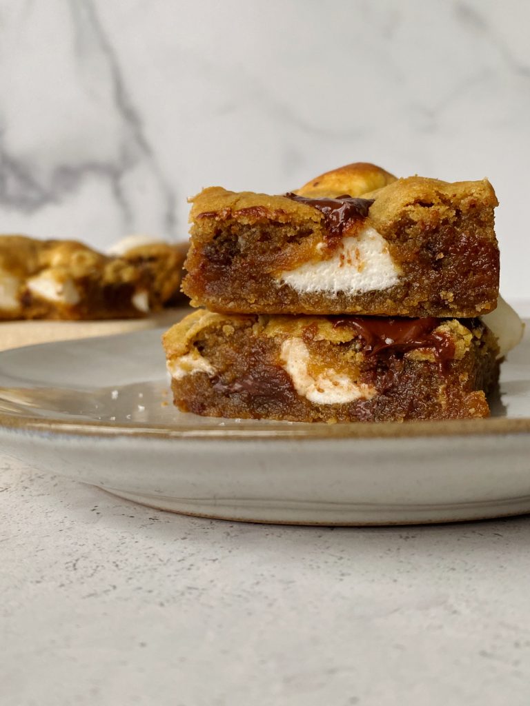 If you love s’mores, you’re going to love these decadent & fudgy tahini s’mores blondies! They’re filled with pools of marshmallows and chocolate chunks, with the perfect nutty flavor from the tahini.