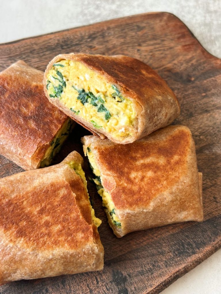 Freezer-friendly spinach and feta egg wraps are a nourishing meal prep for busy mornings! These wraps pack in protein, fiber and whole-grains, and are ready in under 30 minutes. They can be frozen or refrigerated, and enjoyed throughout the week or months to follow.