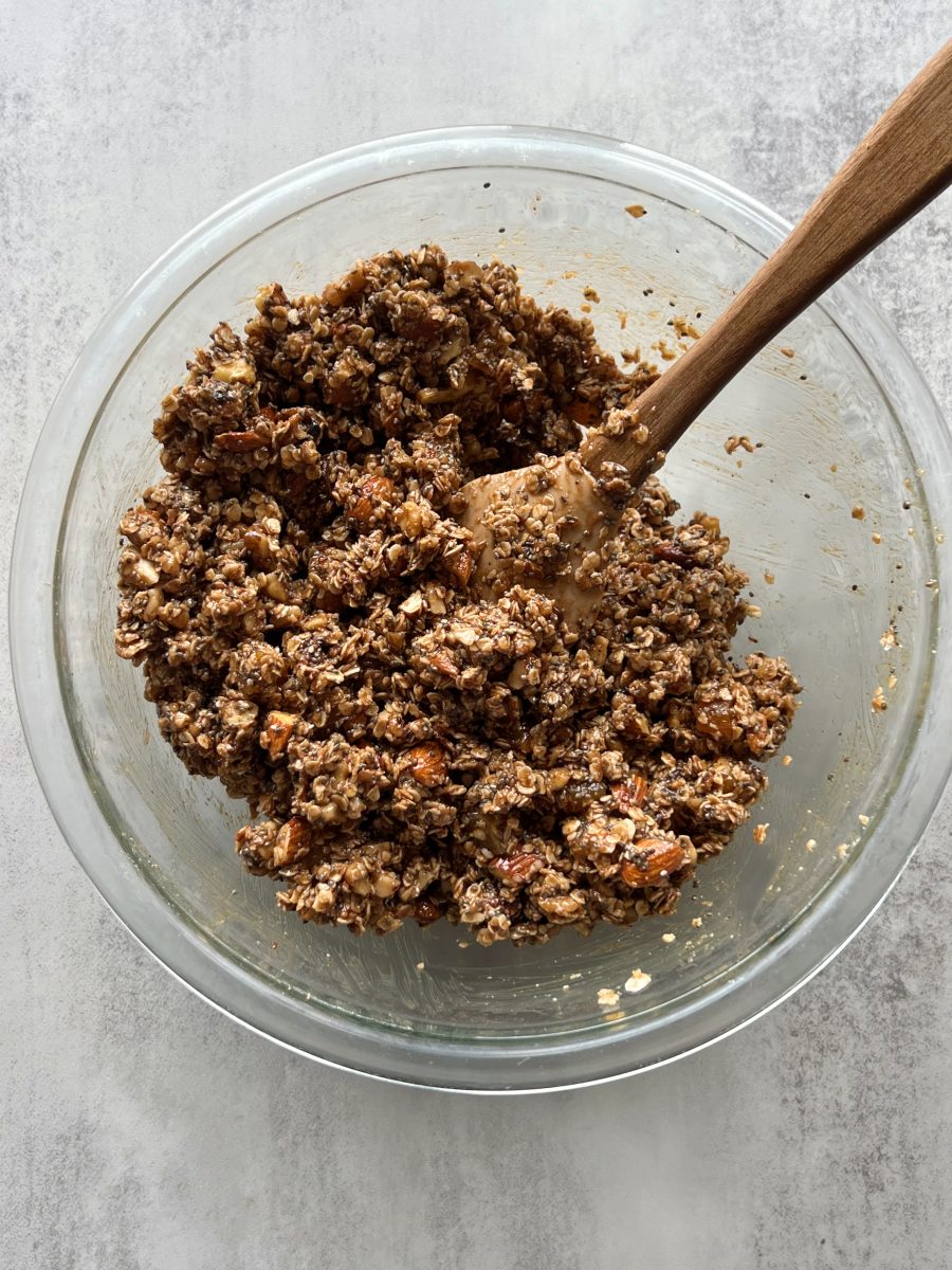 - After melting the coconut oil and maple syrup, be sure to whisk it well with the almond butter until the mixture is smooth. If your almond butter is on the drier side, I suggest blending it first.