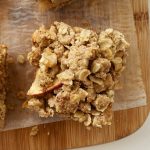 You prep the crumble mixture for both the base and the top, then toss the apples with the seasoning and bake until crispy perfection! Easy, delicious, and nutritious.