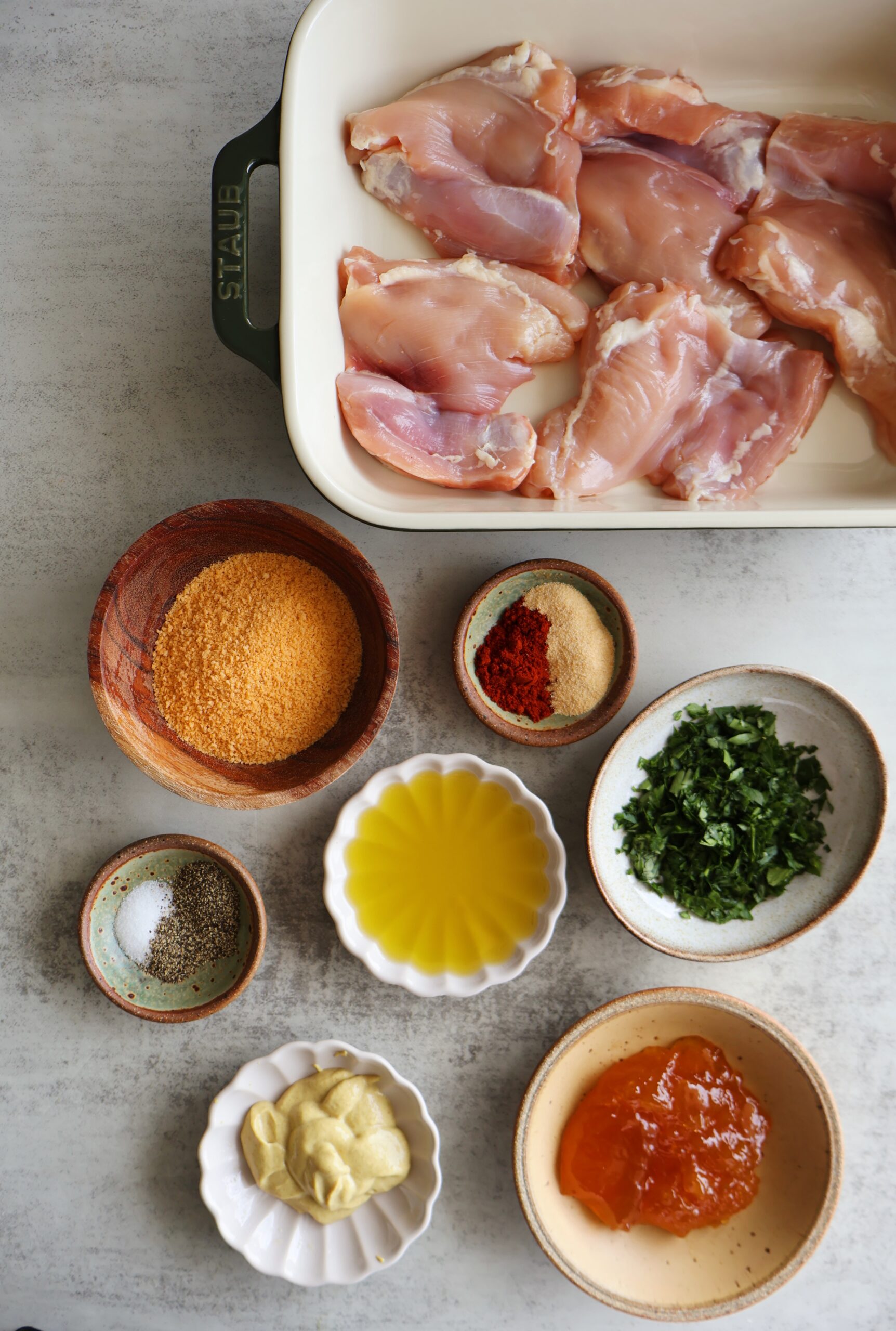 I’m back with a new, simple, yet delicious dinner recipe for you all. Apricot breaded chicken thighs with a sweet and tangy apricot dijon marinade topped with toasted breadcrumbs. A recipe that comes together so easily and is the perfect way to change up your weekly chicken dishes.