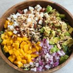 Made this twice already and it’s absolutely delicious! The sweetness from the mango, the tartness from the dressing, crunch from the nuts – all of it combined makes for a nutritious and satisfying meal. I’ve added air fried salmon to this! Going to add shrimp next time. My husband also approved!
