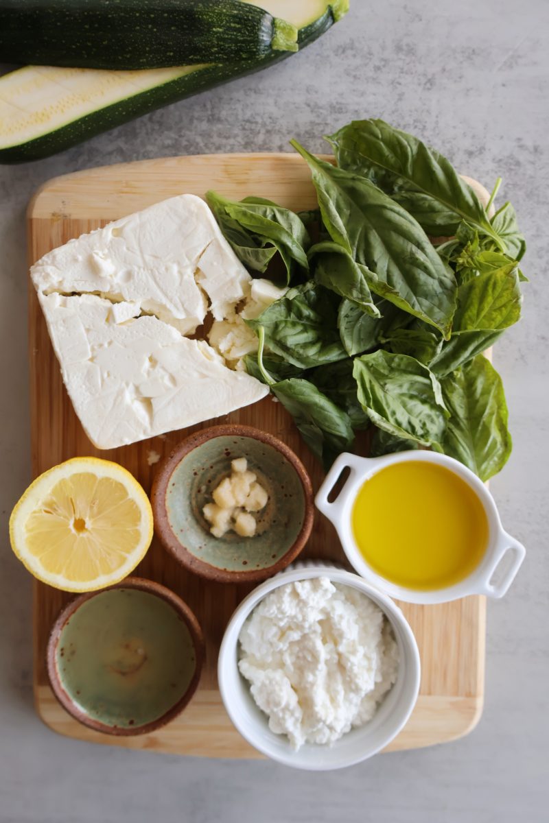 Ingredients you’ll need for Basil Whipped Feta and Zucchini