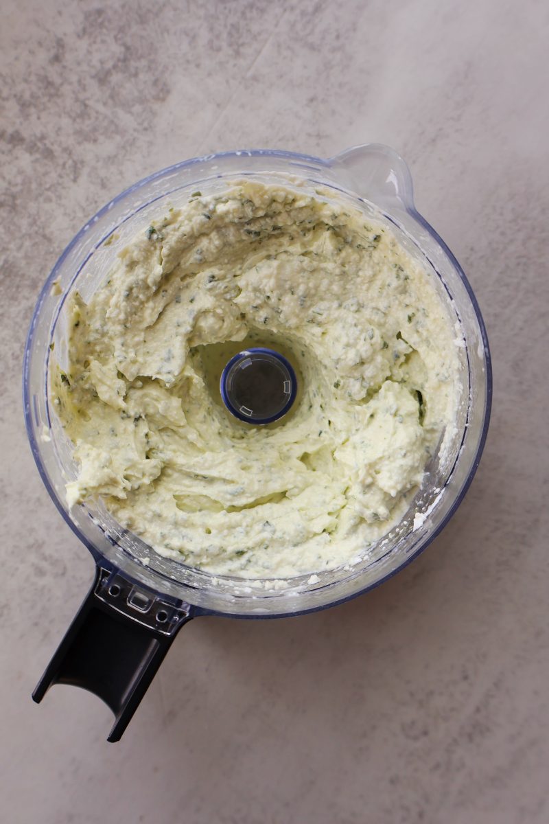 - Prepare the basil whipped feta by blending all of the ingredients in food processor or blender until smooth.