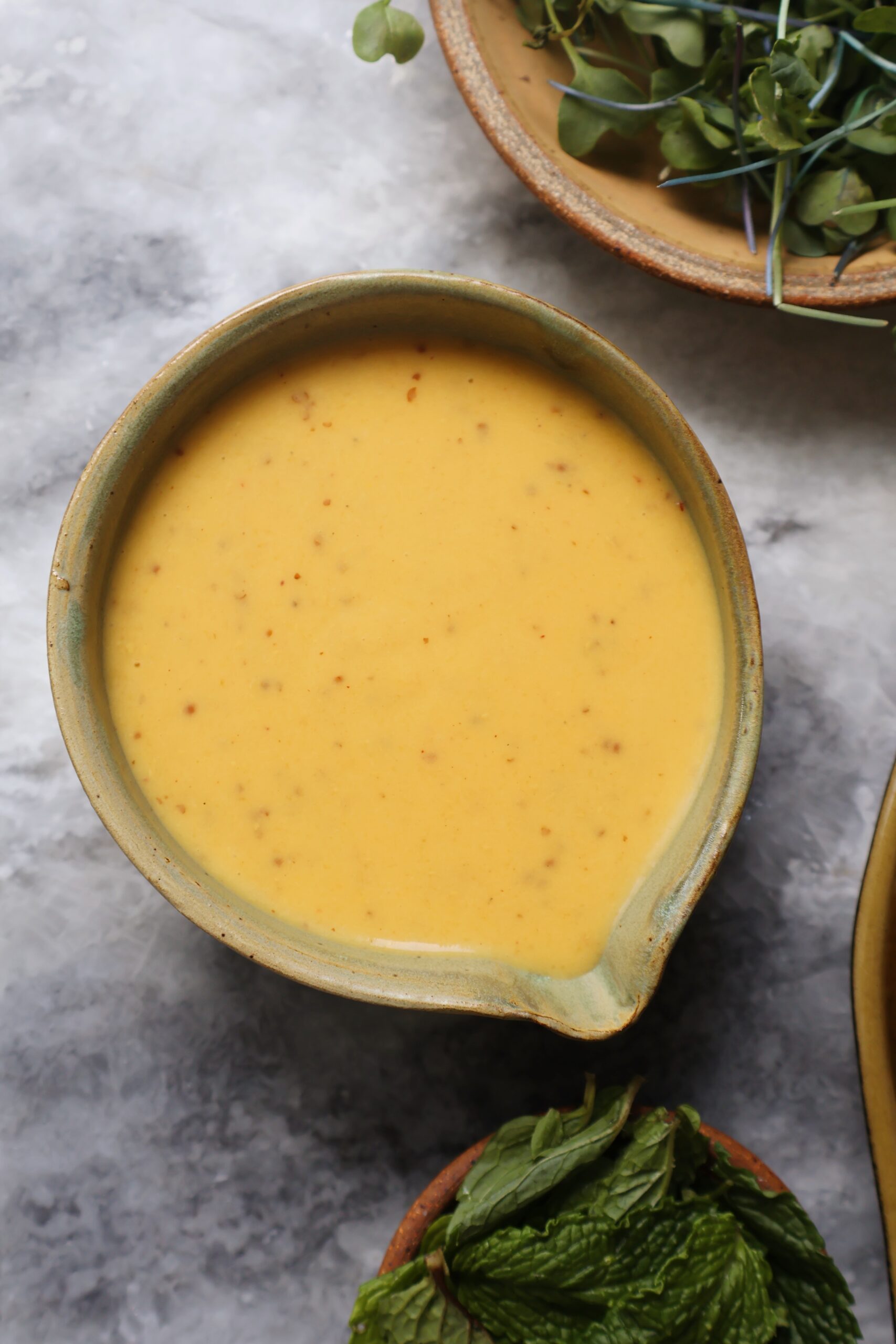 - homemade peach vinaigrette for a sweet and tart finish. Made with yellow peaches, apple cider vinegar, olive oil, honey, dijon mustard and salt
