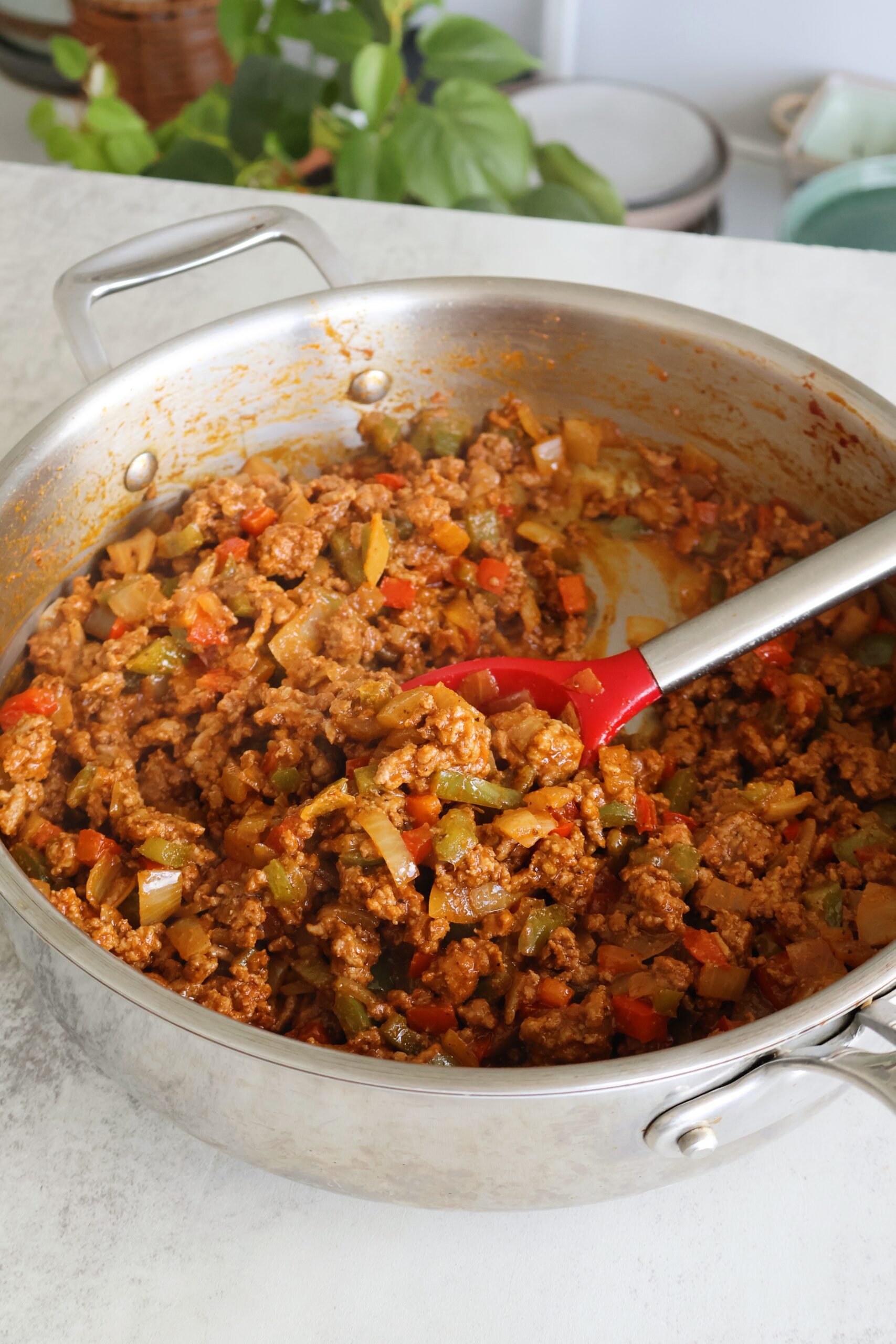 I love recipes that double as meal prep for the week to make workday lunches that much simpler. This recipe can easily be made ahead and assembled throughout the week. You can use the beef and veggie mixture in wraps to make burritos with lettuce and avocado, or serve it over fluffy rice or potatoes with your favorite dipping sauce for a well-rounded dish.
