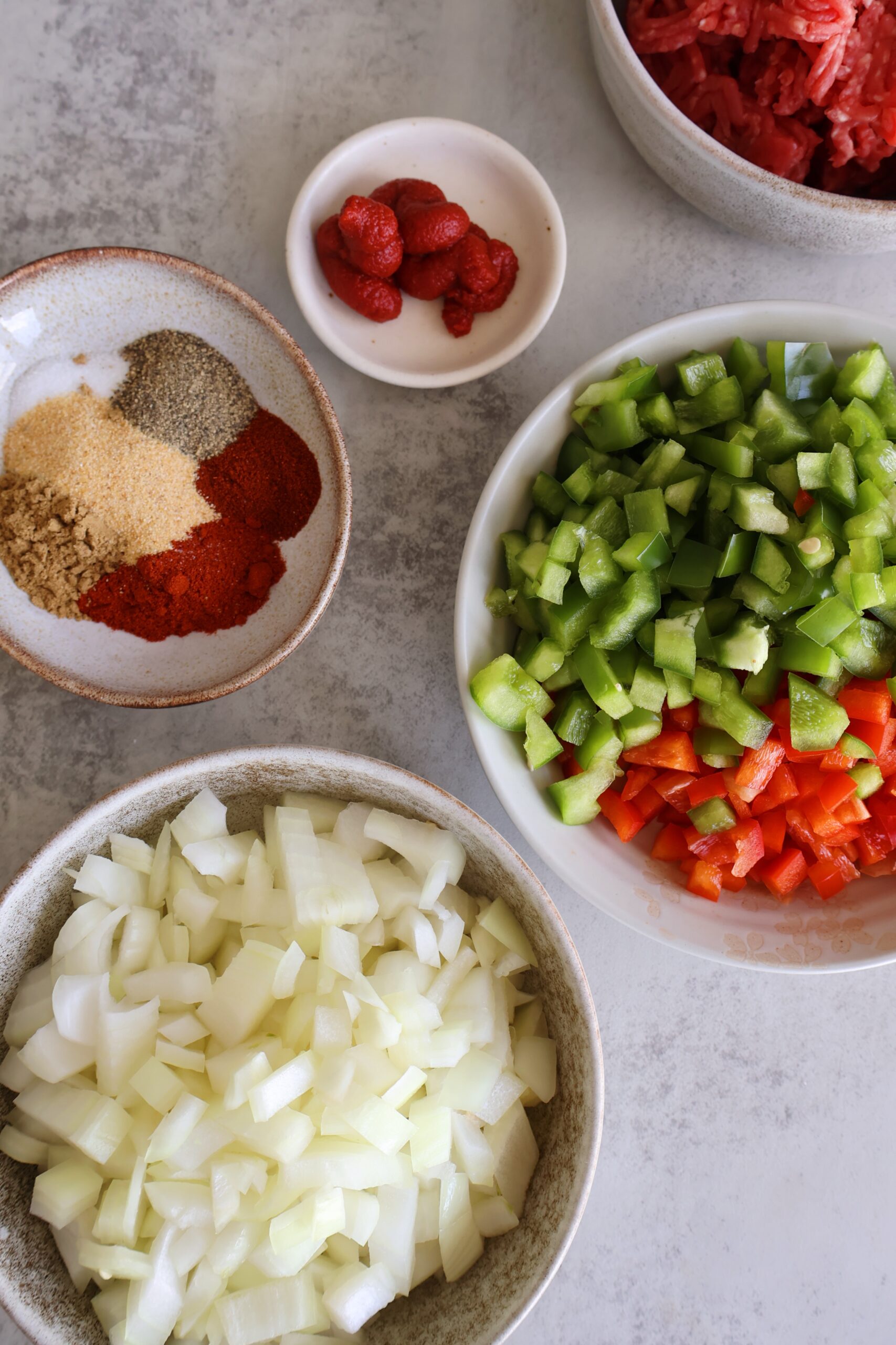 - Ground beef– or sub ground chicken, turkey or tofu for a vegetarian option