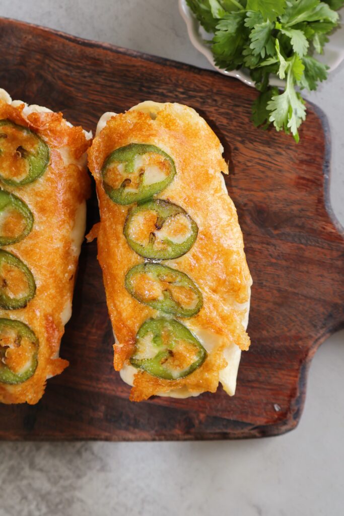 I love to serve these topped with plain greek yogurt, hot sauce and fresh cilantro. They’re hearty enough for a weekday lunch, and easy to grab in the mornings when I’m busy with work or the baby.