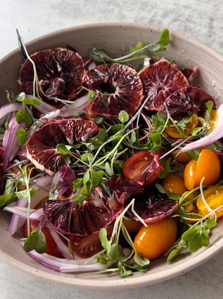 This fresh blood orange burrata salad is made with just a few simple ingredients and is a delicious appetizer to serve all summer long. It’s packed with rich flavor and nutrients, and made with microgreens, burrata, roasted pistachios, and blood oranges.