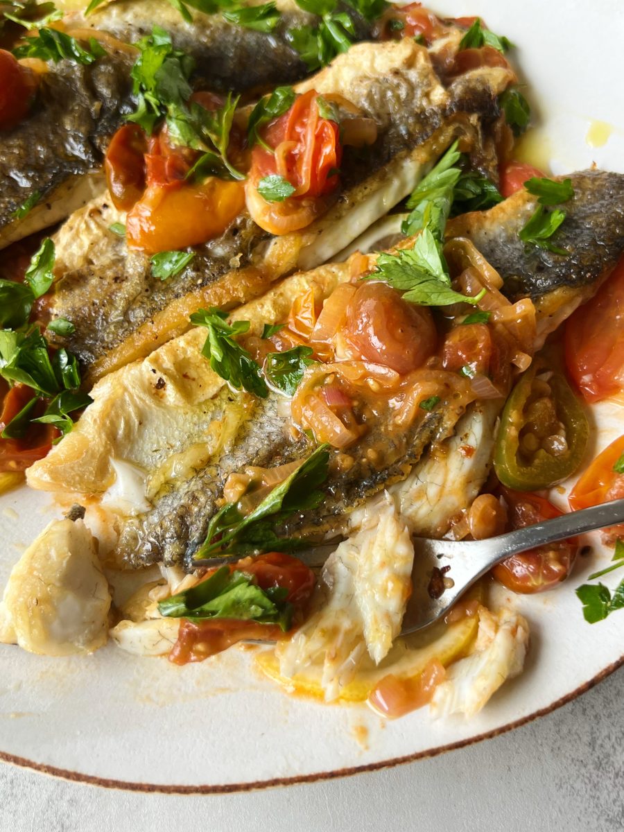 Branzino with Tomatoes & Jalapeno