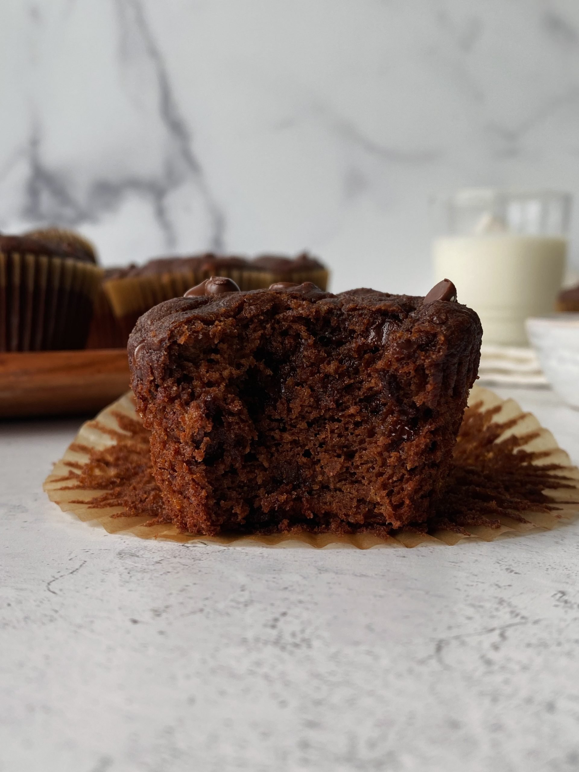 These chocolate banana muffins are moderately sweet, and are so delicious alongside a cup of almond milk. They’re easy to make, and are gluten and dairy free!