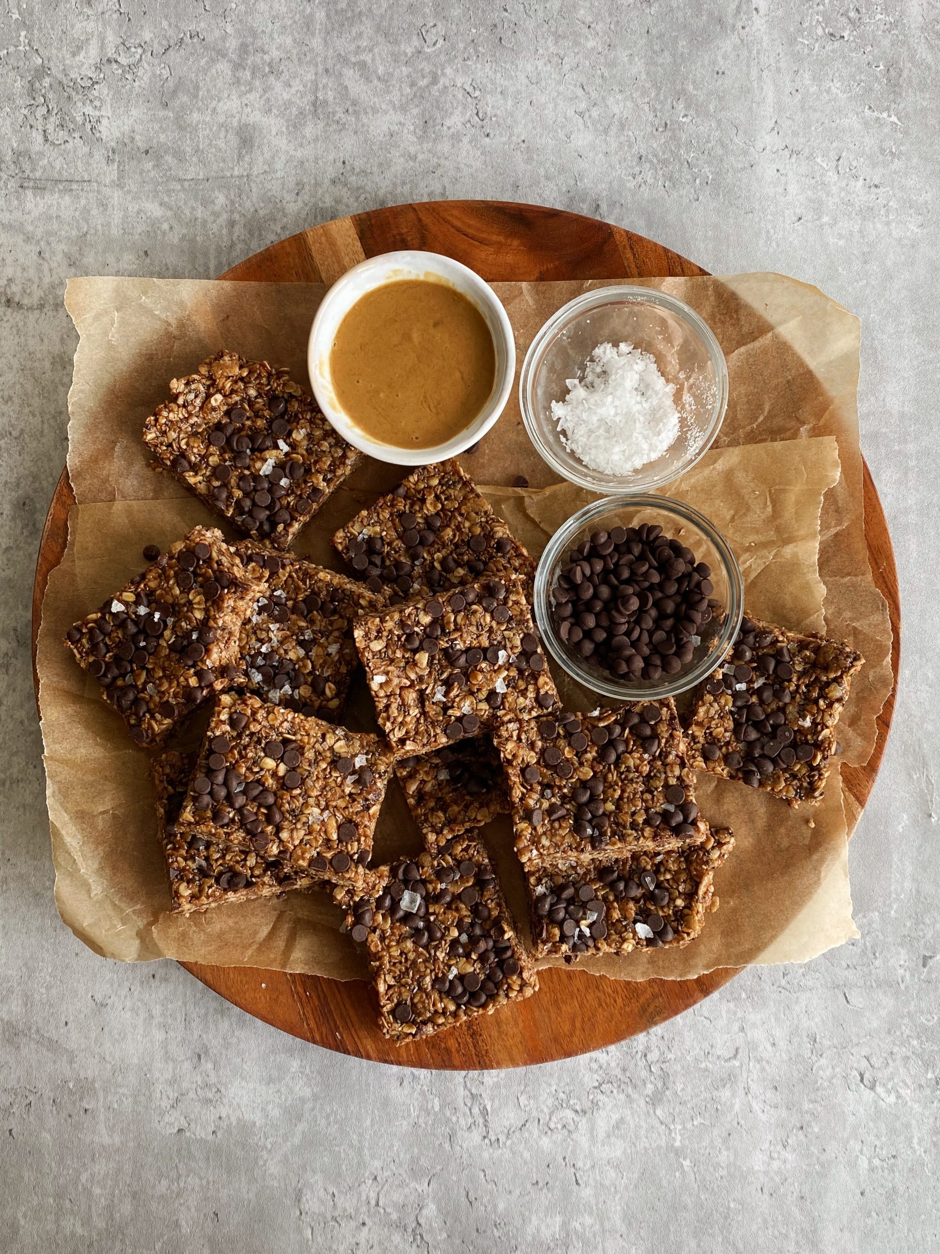 Chocolate chip peanut butter granola bars come together so easily with just a handful of ingredients. Here’s what you’ll need: