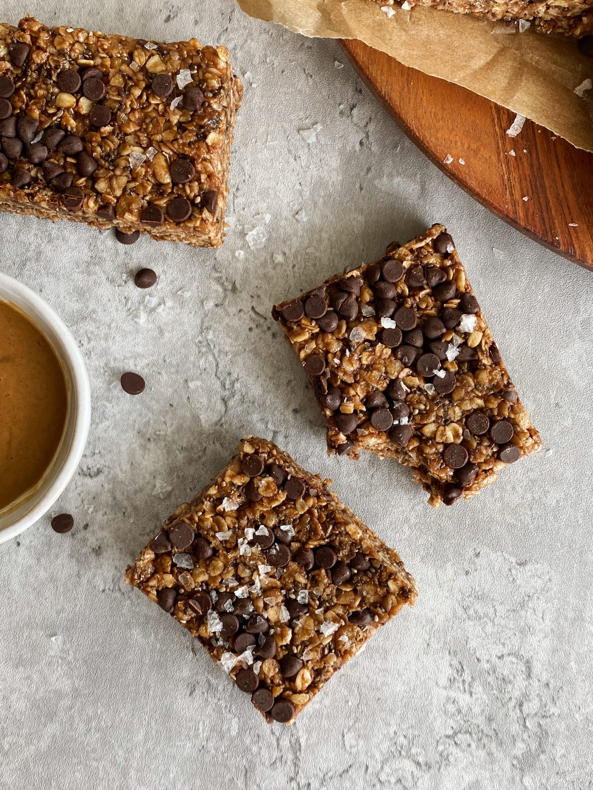 No-bake chocolate chip peanut butter granola bars are a nutrient dense snack to have on hand. They’re dairy-free and gluten-free friendly, and made with only the best ingredients!
