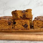 Gluten-free chocolate chip pumpkin bars are the perfect fall treat. They’re made with oat flour and almond flour, and lightly sweetened with coconut sugar.