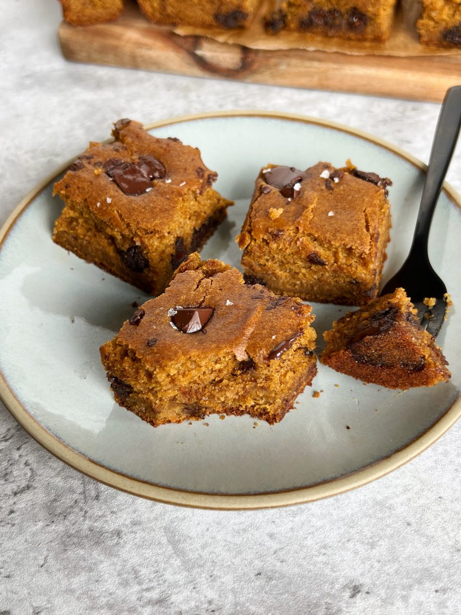 If you’re not a fan of the chocolate + pumpkin combination, you can easily make these with white chocolate chips, or as plain pumpkin bars. They’re so convenient to have around and come together so easily.