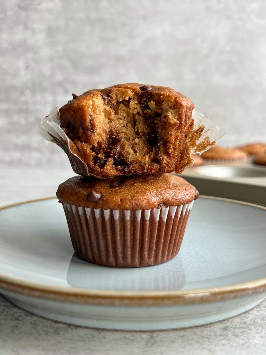 Chocolate chip yogurt muffins are a lightly sweetened treat for a little mid-day snack. They come together in 10 minutes, and are made with minimal ingredients.