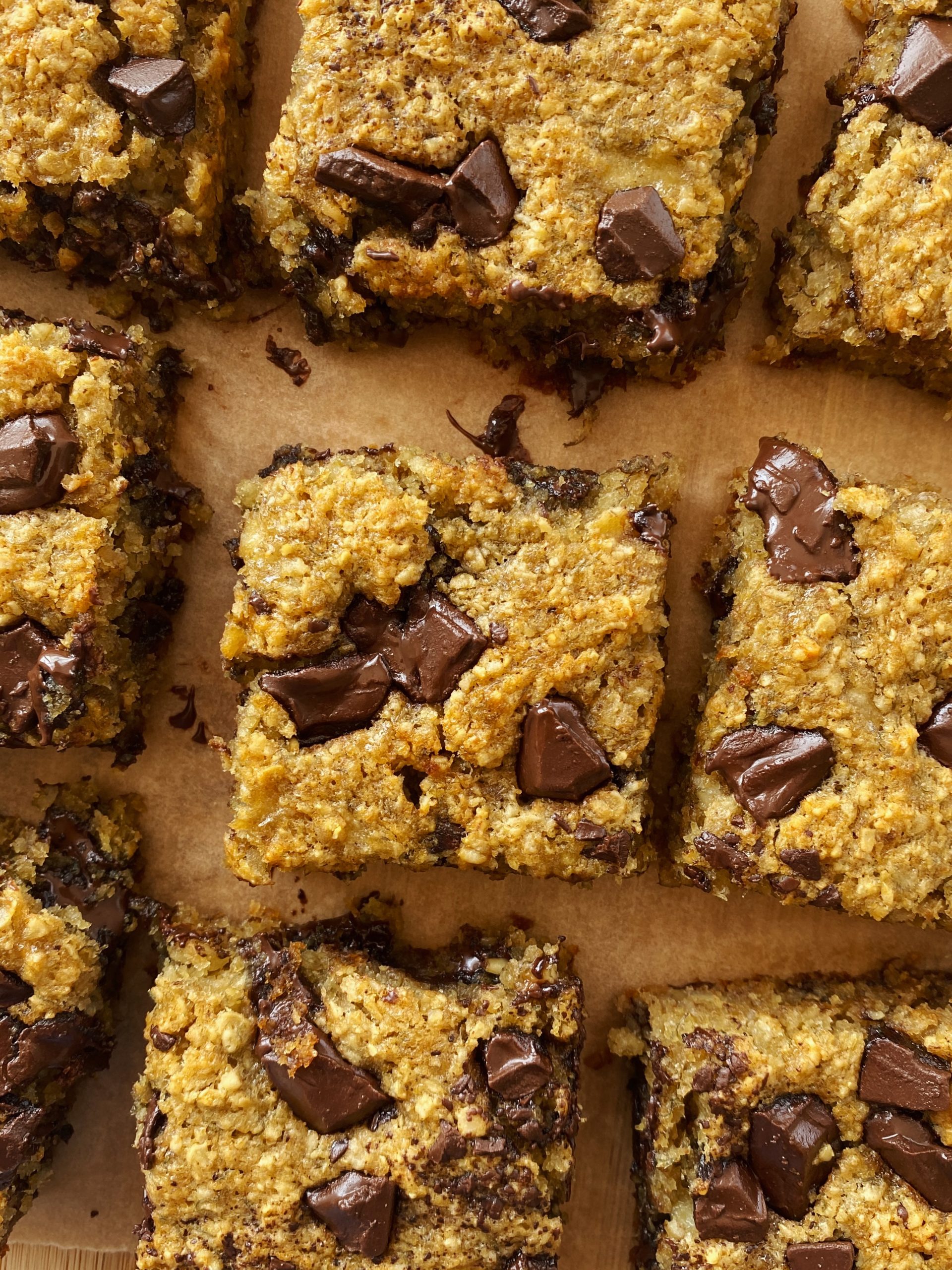 The texture of these chocolate chunk banana oatmeal bars is unbeatable. They’re light, moist, and have pools of melted chocolate in each bite. They’re a perfect gluten-free and nut-free treat to have on hand, and can even be frozen.