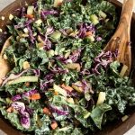 Chopped kale salad with sesame tahini dressing is a delicious fall salad packed with so much flavor. It’s crisp, crunchy, and pairs well with any weeknight dinner!