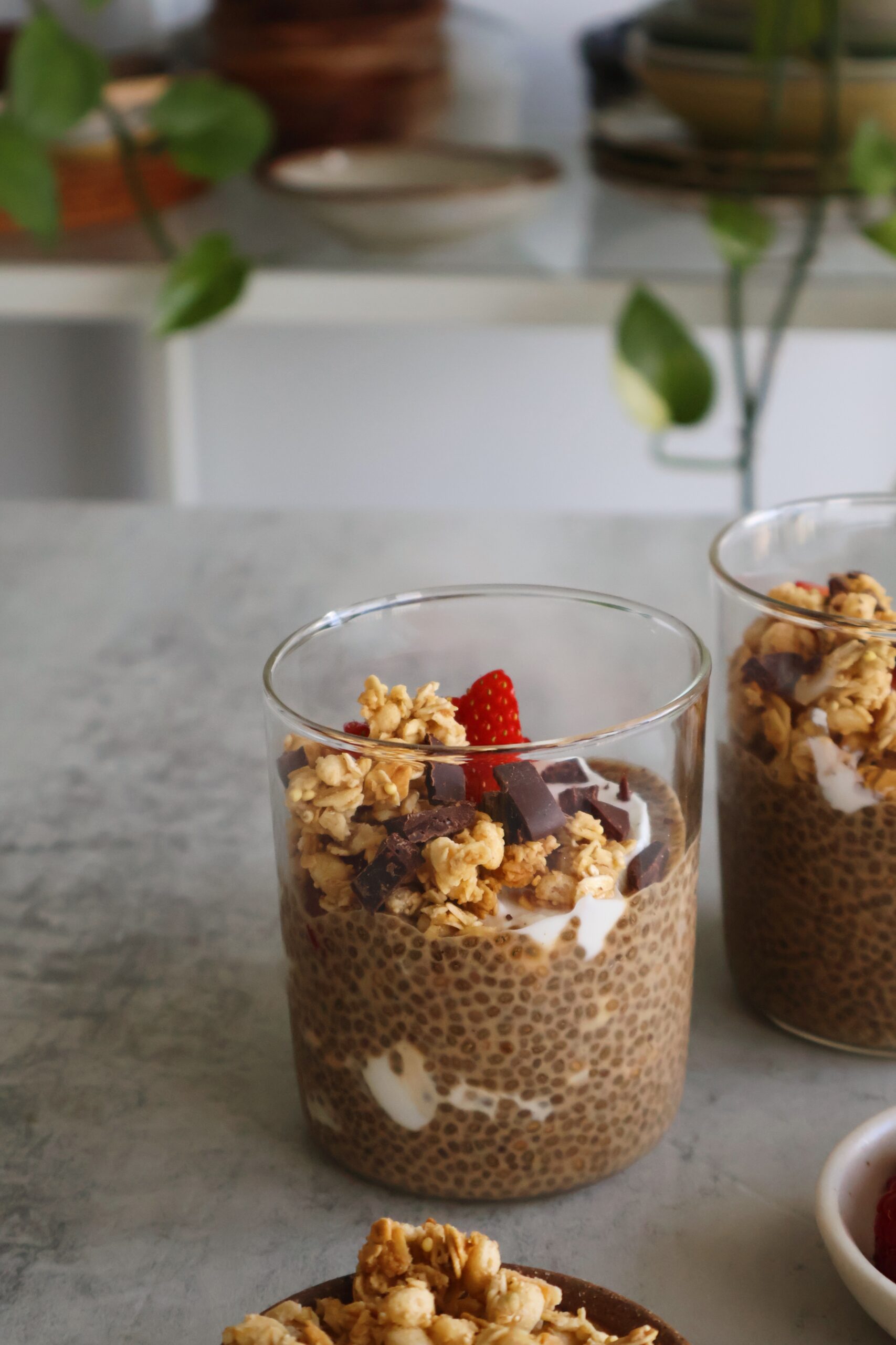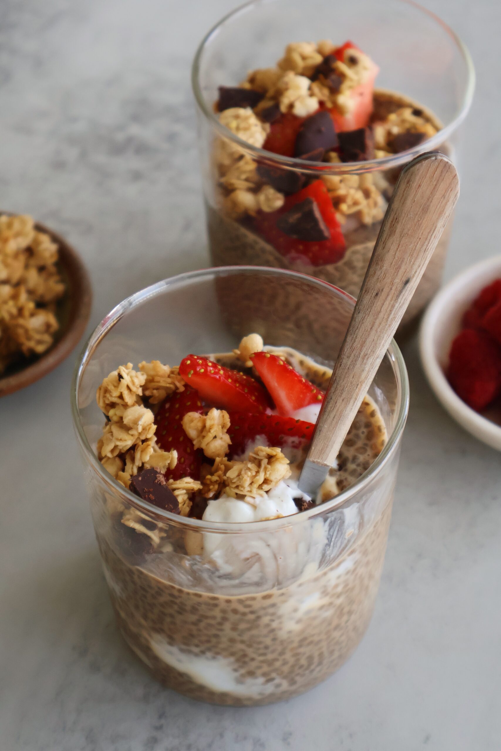 I love to layer it with greek yogurt, fresh berries and some homemade granola for an added crunch. The yogurt adds a boost of protein, the berries add even more nutrients and antioxidants, and the granola offers whole-grains and texture.