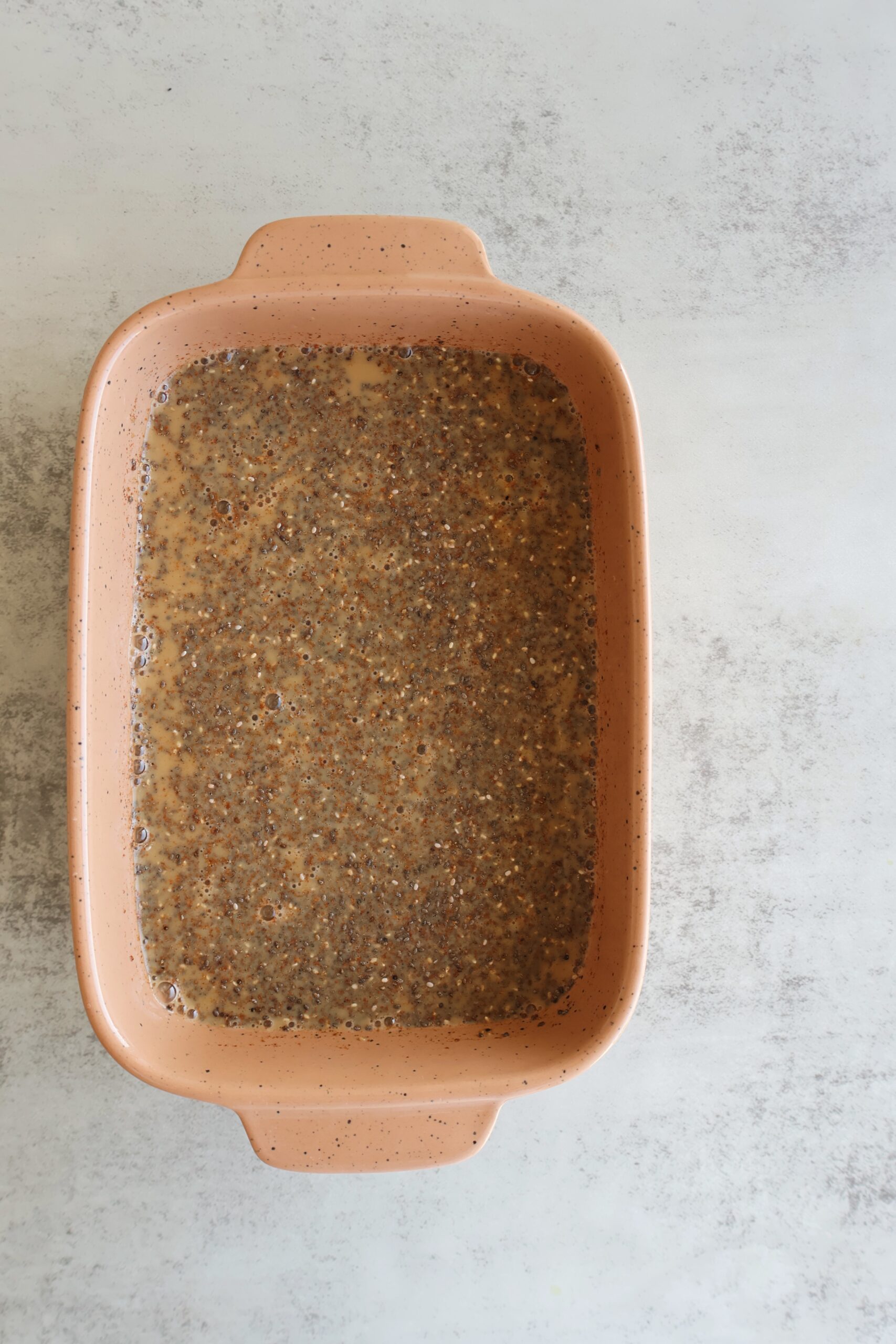 - Add the chia seeds, cinnamon, brewed coffee, milk, vanilla extract and sweetener and to a small dish or container and whisk well.
