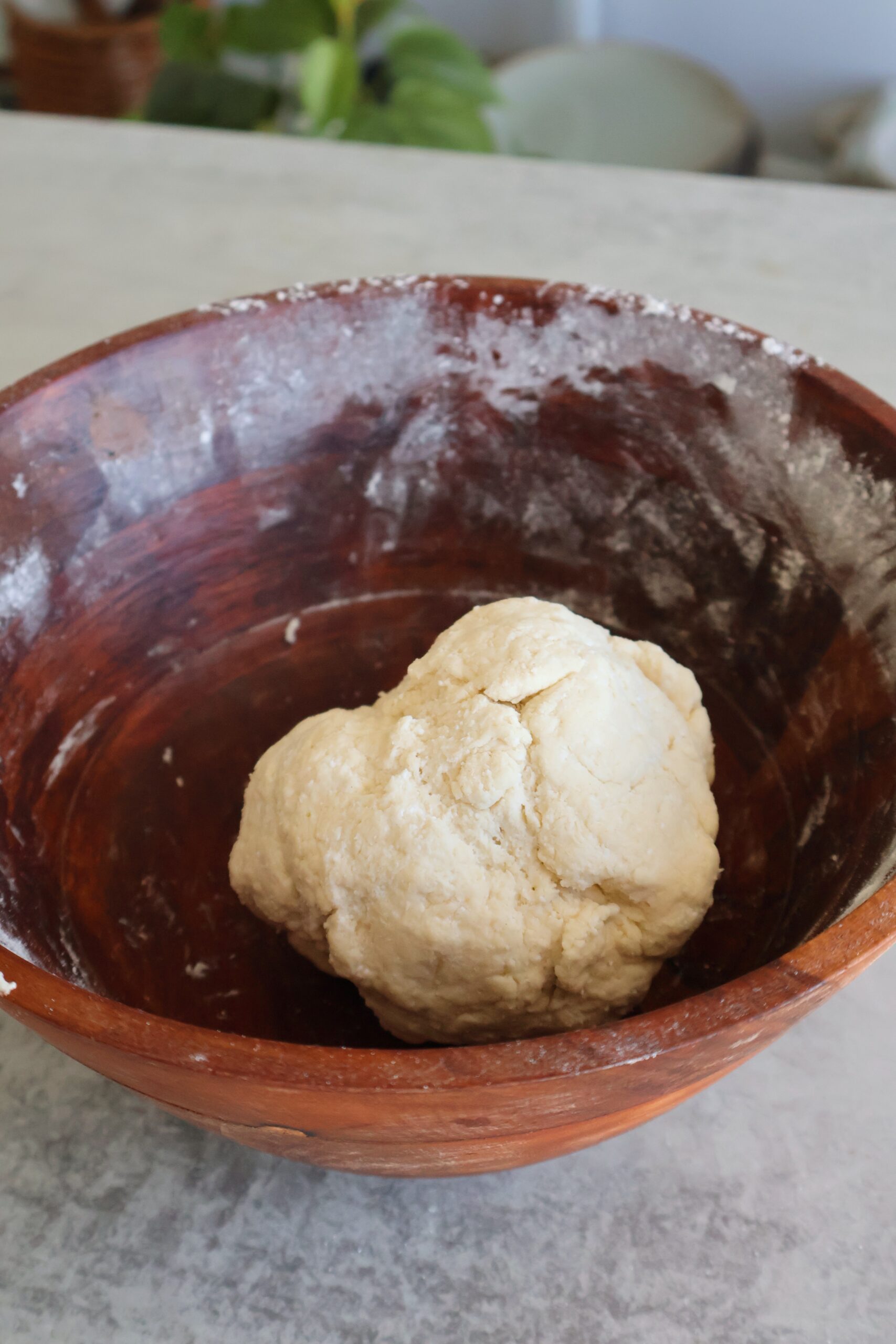- Next, combine the flour, baking powder and salt in a bowl, then mix in the cottage cheese. Knead the dough with your hands to evenly incorporate the flour and cottage cheese. You may need to add more flour to your hands as needed to form a dough