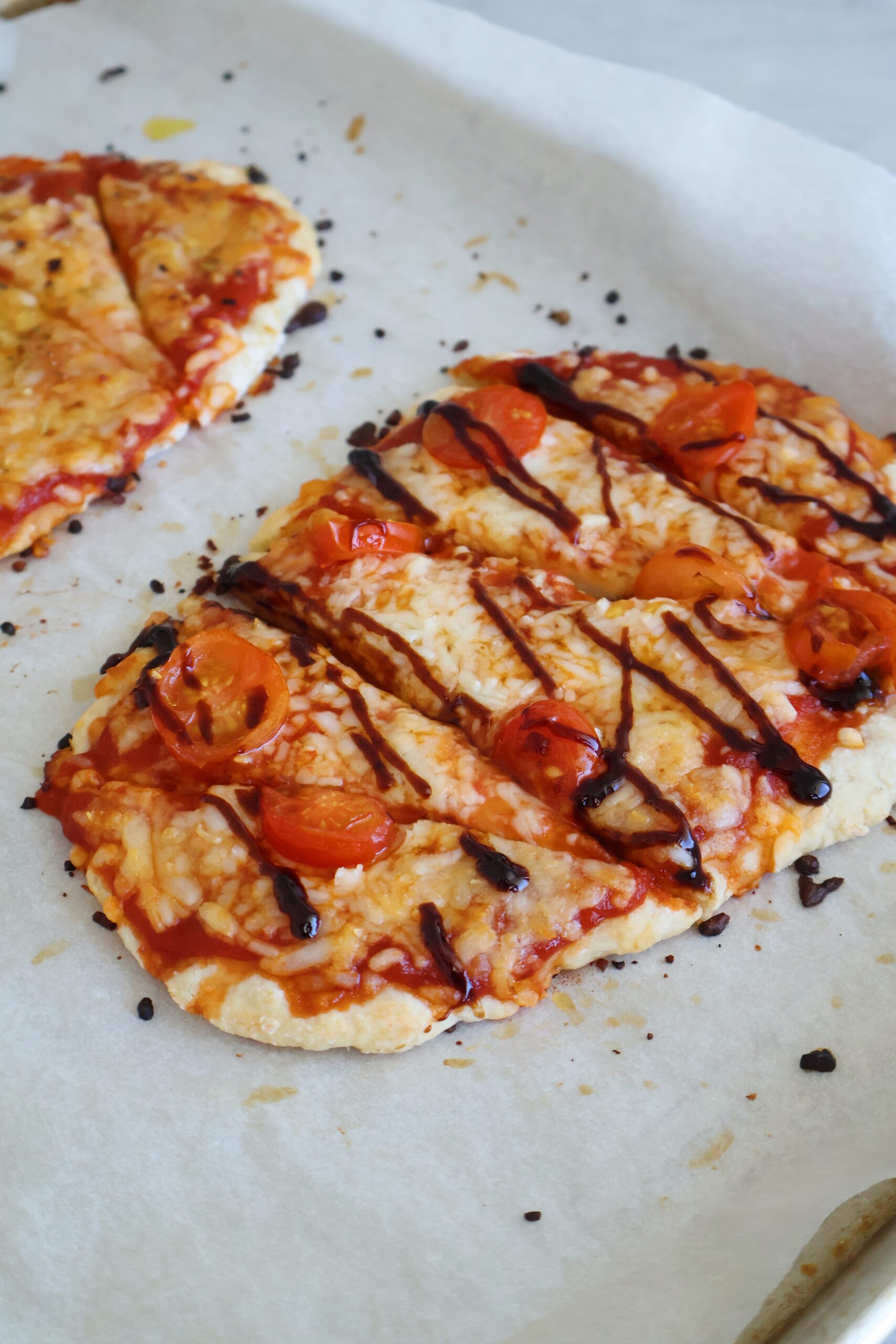 I love to top my pizza with cherry tomatoes and balsamic glaze, or with a drizzle of chili oil and hot honey. The topping possibilities are truly endless.