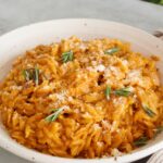 I’m all about cozy recipes this season and this creamy pumpkin orzo just hits the spot for something comforting and nutritious. The sauce is made from a blend of pumpkin puree, tomato paste, coconut milk and broth, and simply seasoned with pumpkin pie spice, salt & pepper.