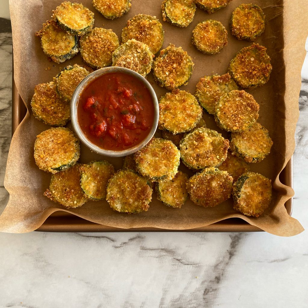 Zucchini chips are such an easy, fun side dish to any meal! I mean, you can’t go wrong with anything thats coated in bread crumbs, but when you hit one of your veggie servings for the day, its a huge win.