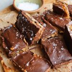 - Set the bars in the freezer to set, top with flakey salt then slice and enjoy!