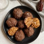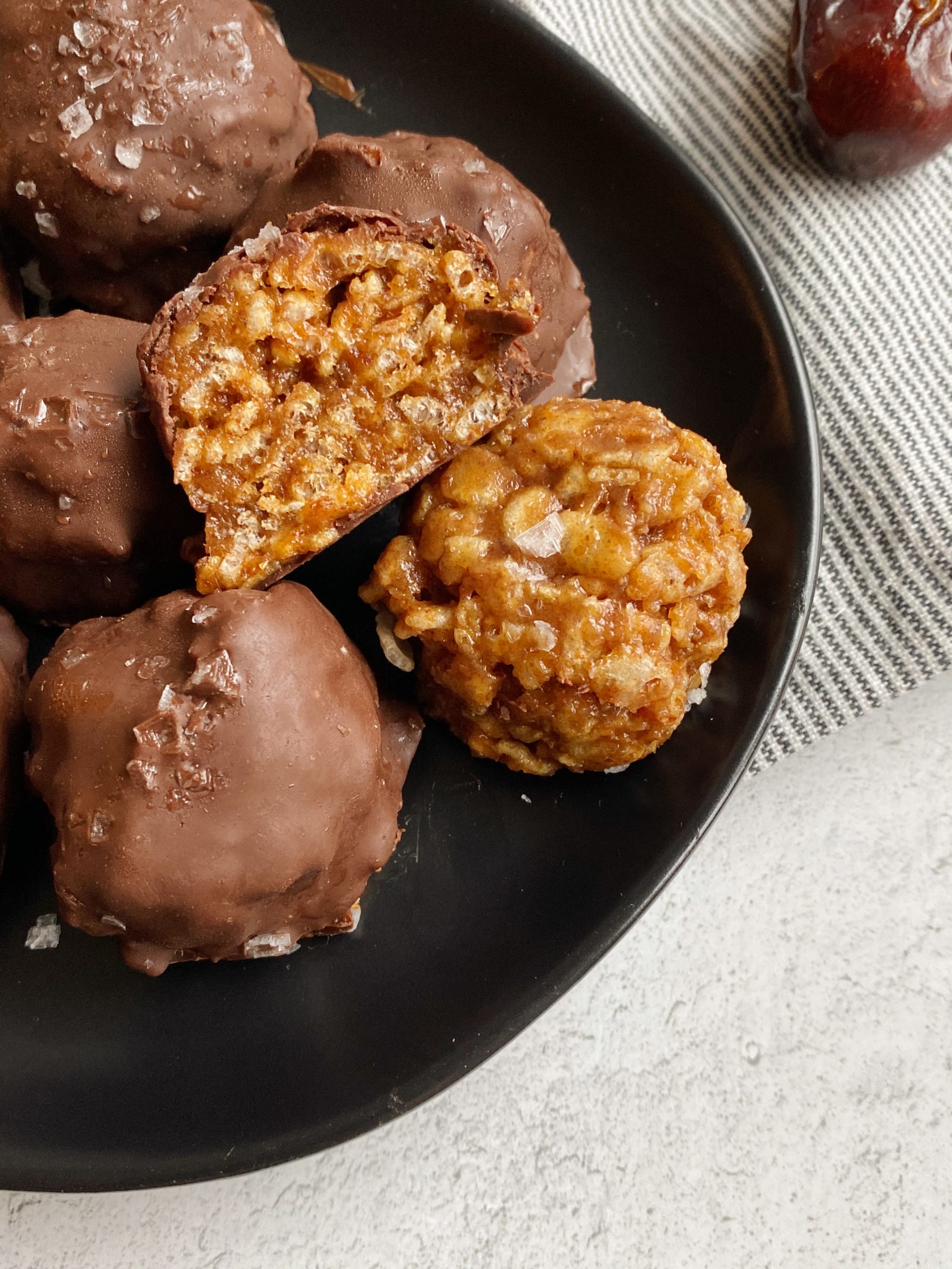 Sweet, salty and crispy date caramel bites! Plant-based and made with minimal ingredients that you likely have lying around. They’re the perfect sweet fix for your daily sweet tooth.