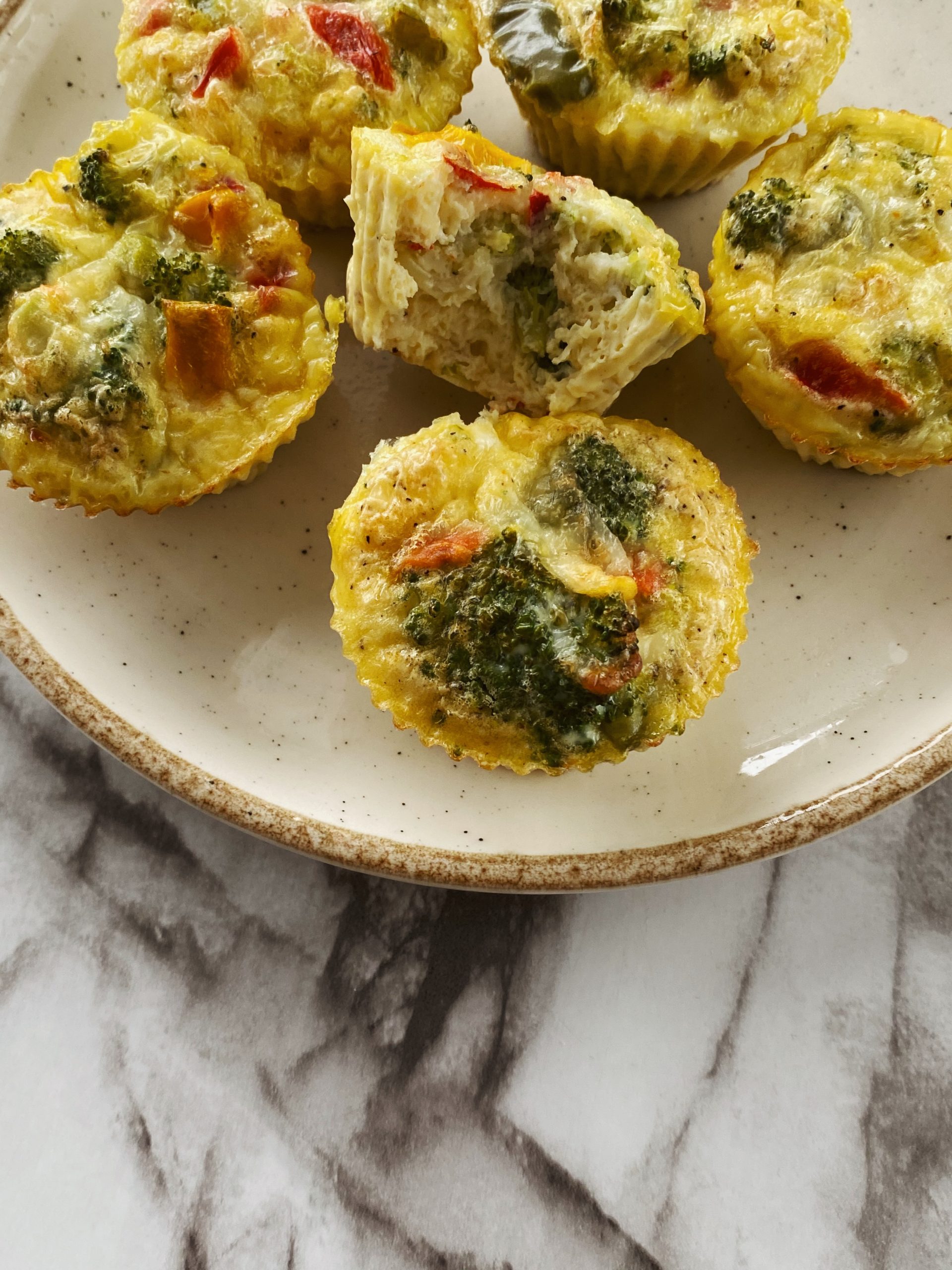 I love to prep these egg muffins for the week when I know I’m going to have busy mornings. They’re the perfect balance of protein and veggies to hold me over after a quick workout, or as a snack between my meals.