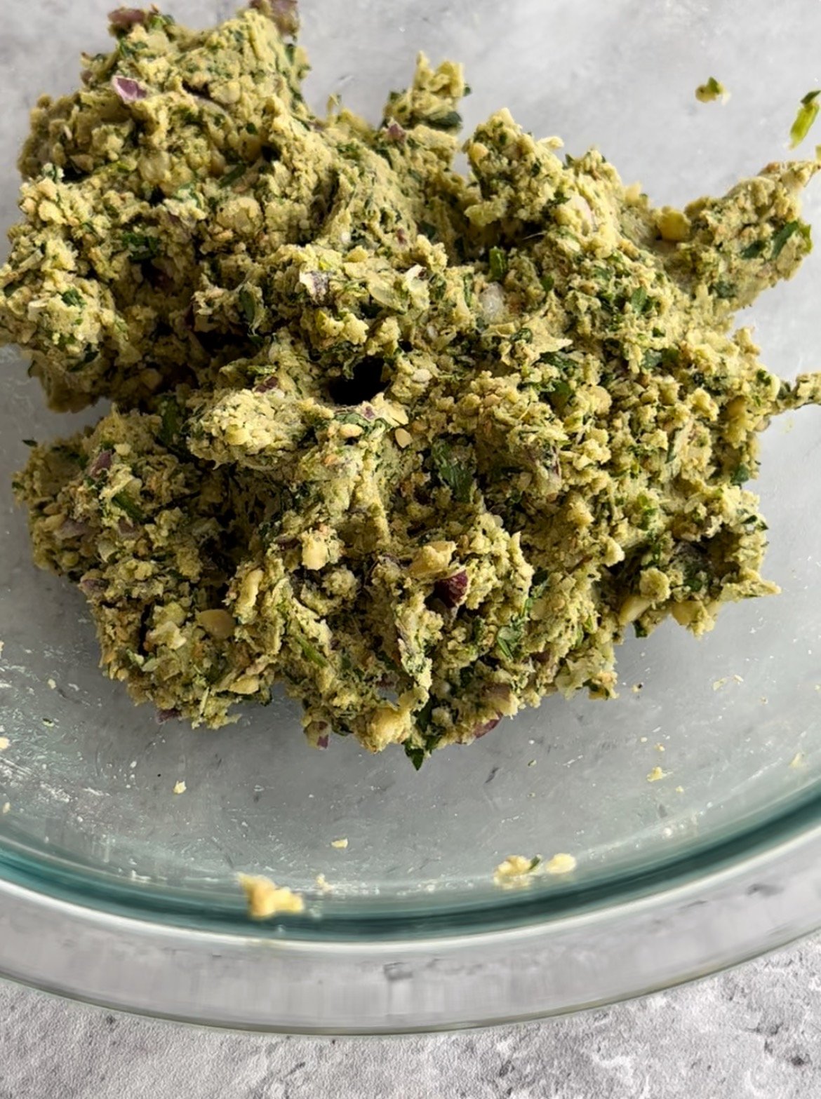 - Transfer the mixture to a large bowl and add in the spices, sesame seeds and flour. Mix together using your hands, making sure everything is evenly mixed. If the mixture is too pureed, I suggest adding an extra 2-3 tbsp of flour.