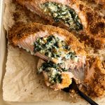 If you’ve never heard of feta stuffed salmon, you’re in for a treat with this 30 minute recipe. The feta and sauteed kale come together to make a creamy filling to stuff salmon fillets with, and the bread crumb topping adds the perfect crunch.