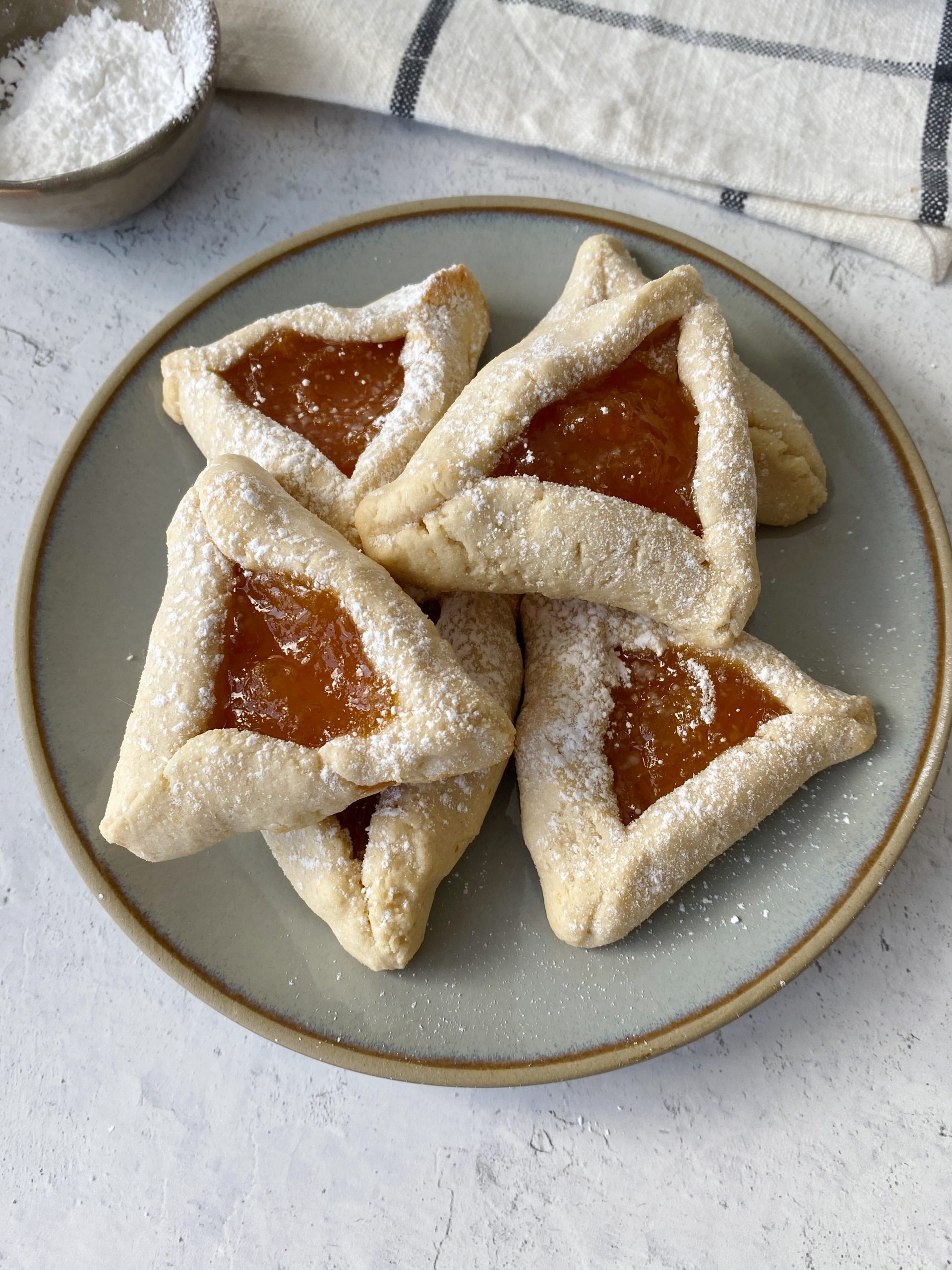 This is my first year testing a homemade hamantaschen recipe, and I’m so happy with how it turned out. Since I personally have no allergies to gluten or dairy, I love enjoying the traditional cookies every year during this holiday.