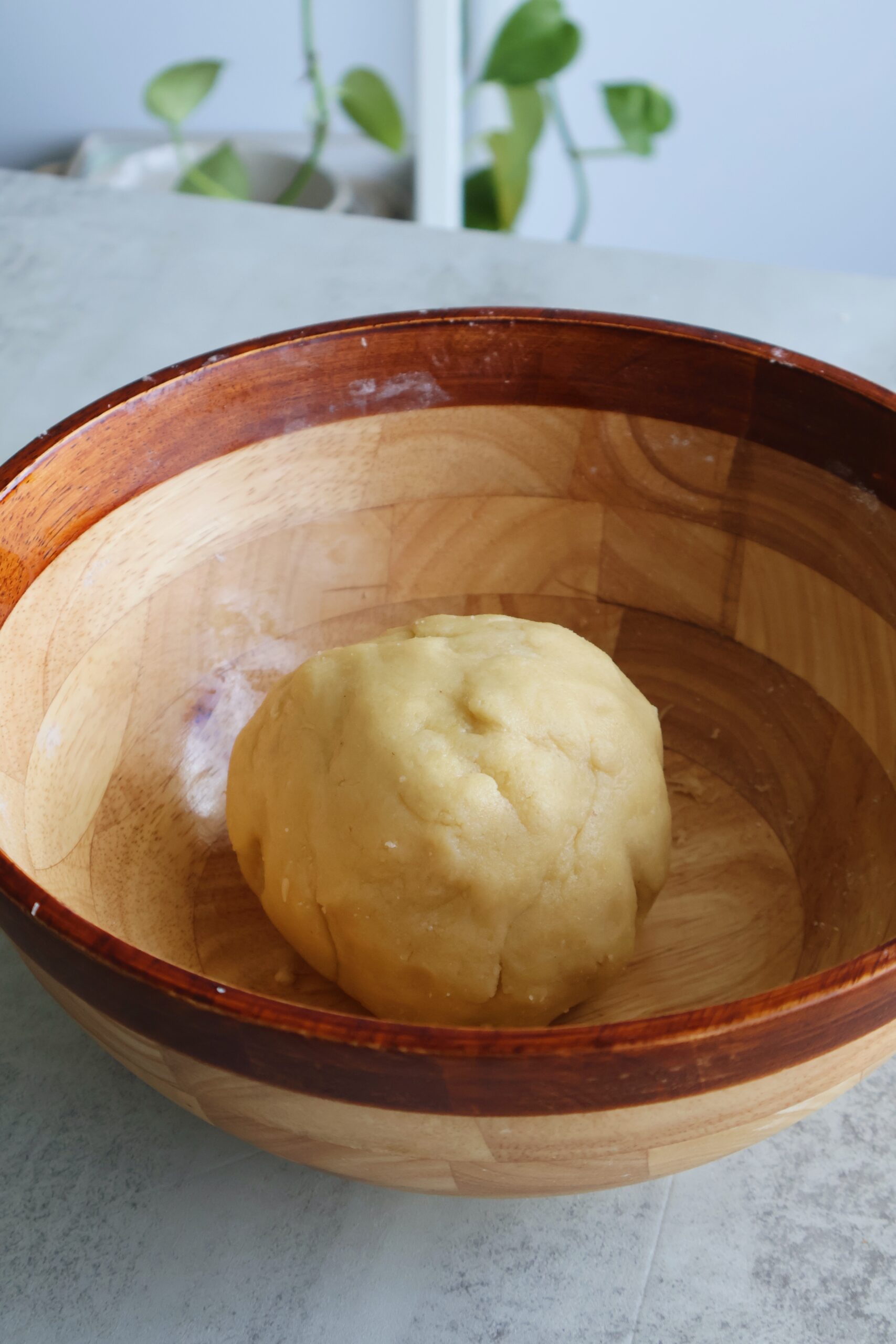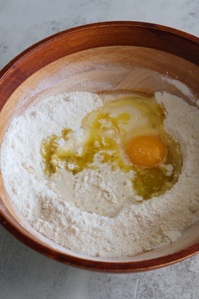 - Add in the wet ingredients and knead together to form the dough. The dough may be stickier than your typical flour-based dough
