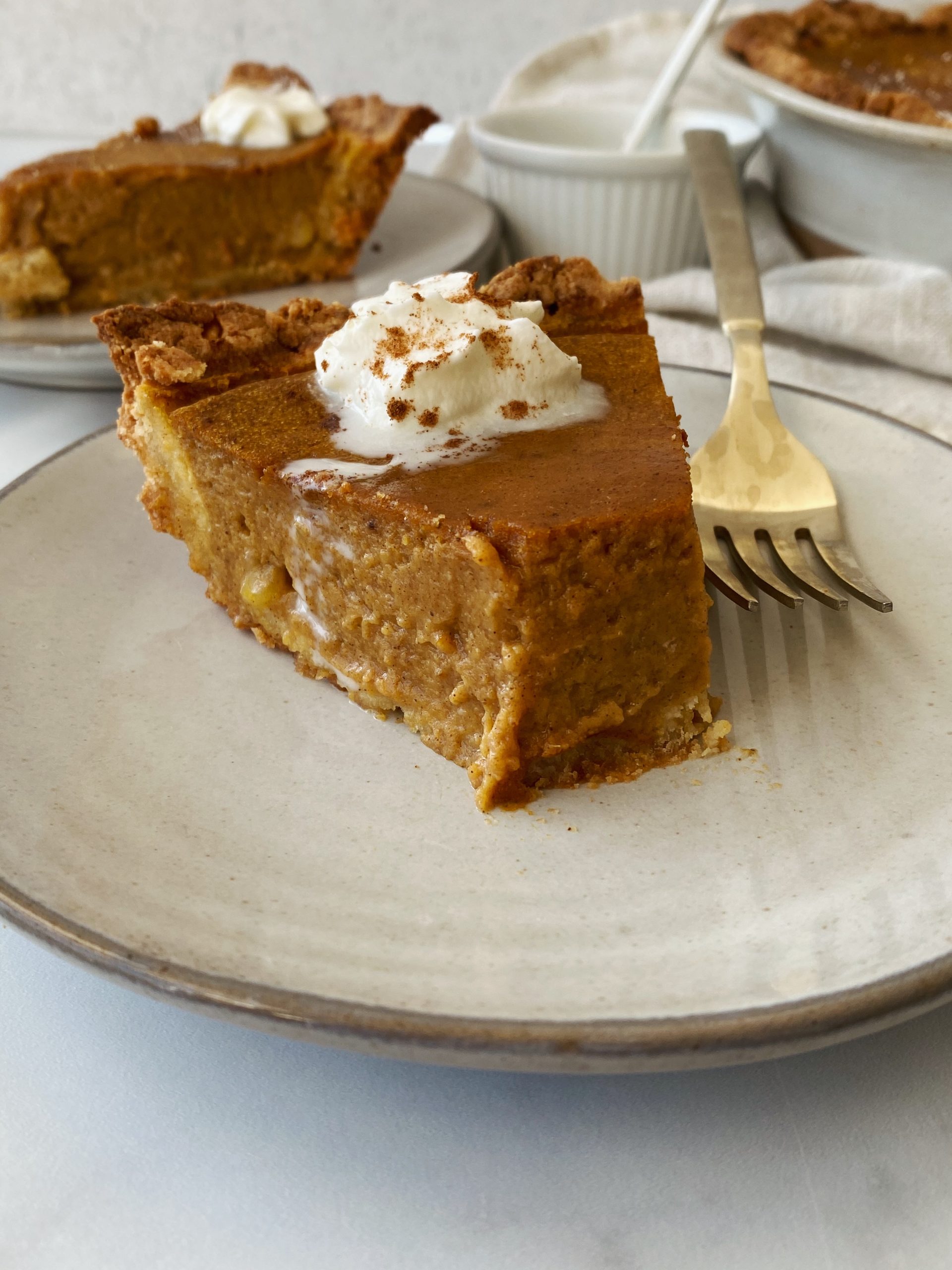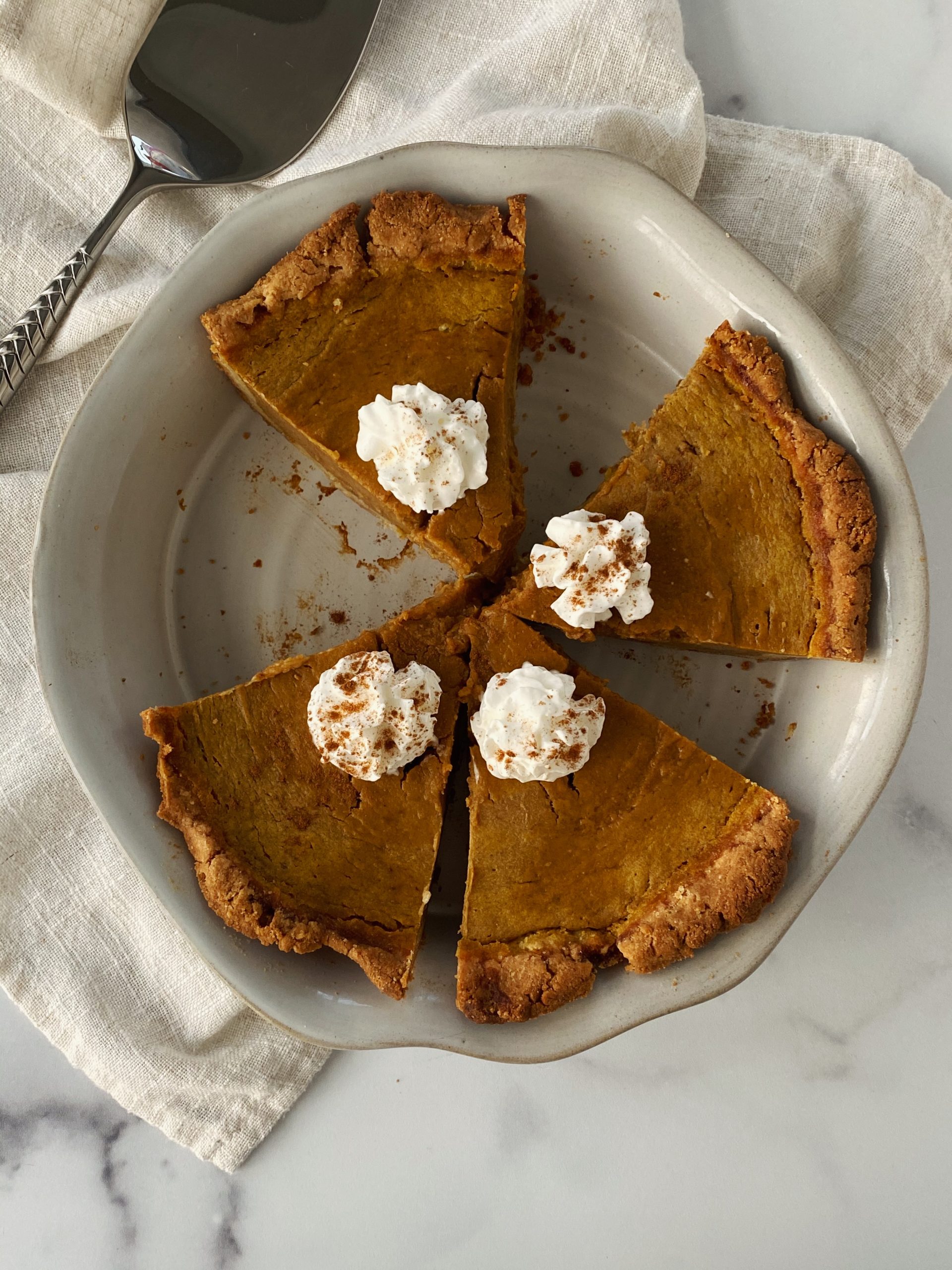 The most perfect gluten-free pumpkin pie is here right in time for the holidays! It has a grain-free crust made from almond flour and cassava flour, and has all the flavors of traditional pumpkin pie, in its own delicious dairy-free way.