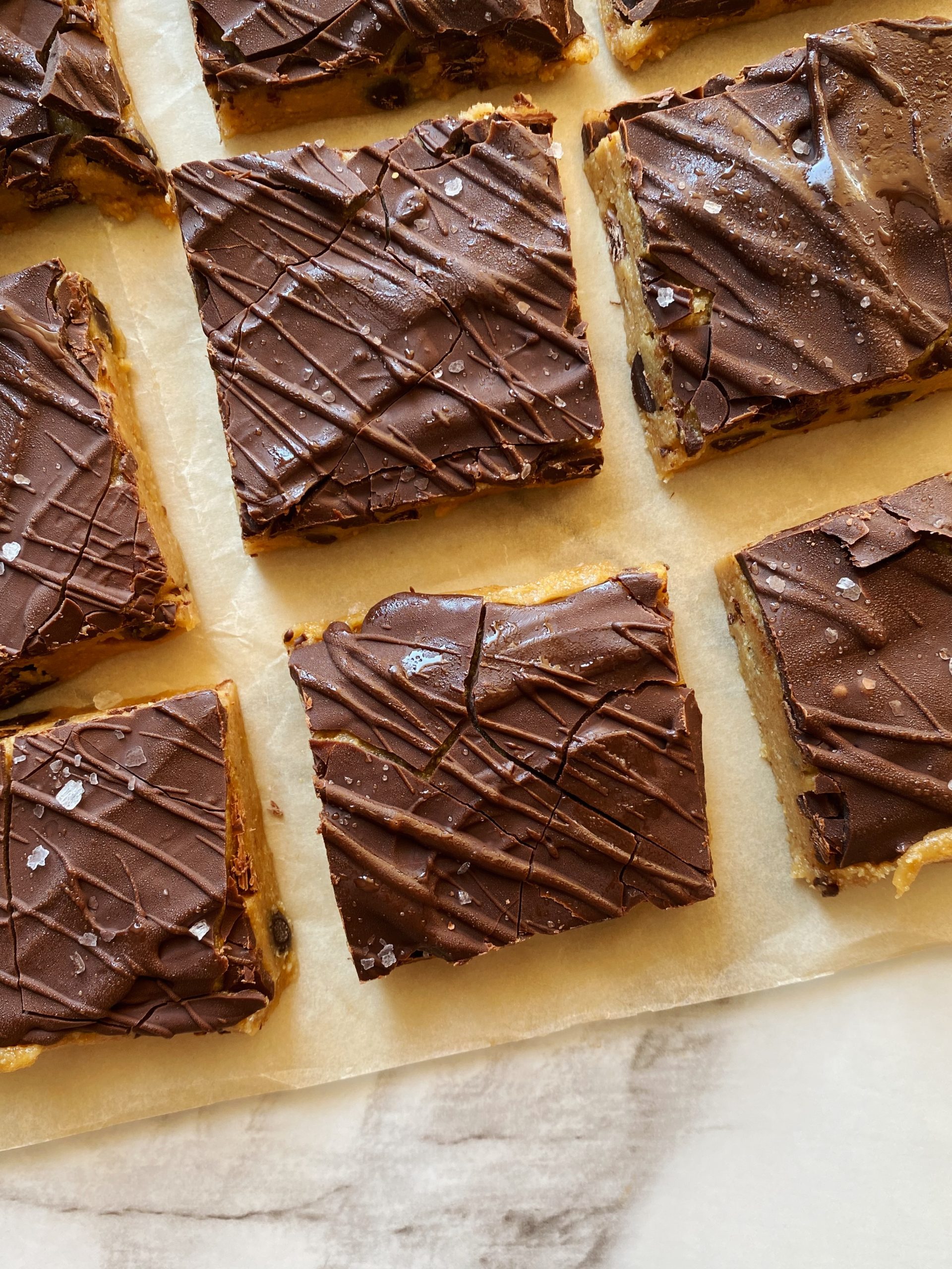These cashew butter cookie dough bars have been a staple in my freezer for years. They taste like the real deal, and are made with a few simple ingredients!