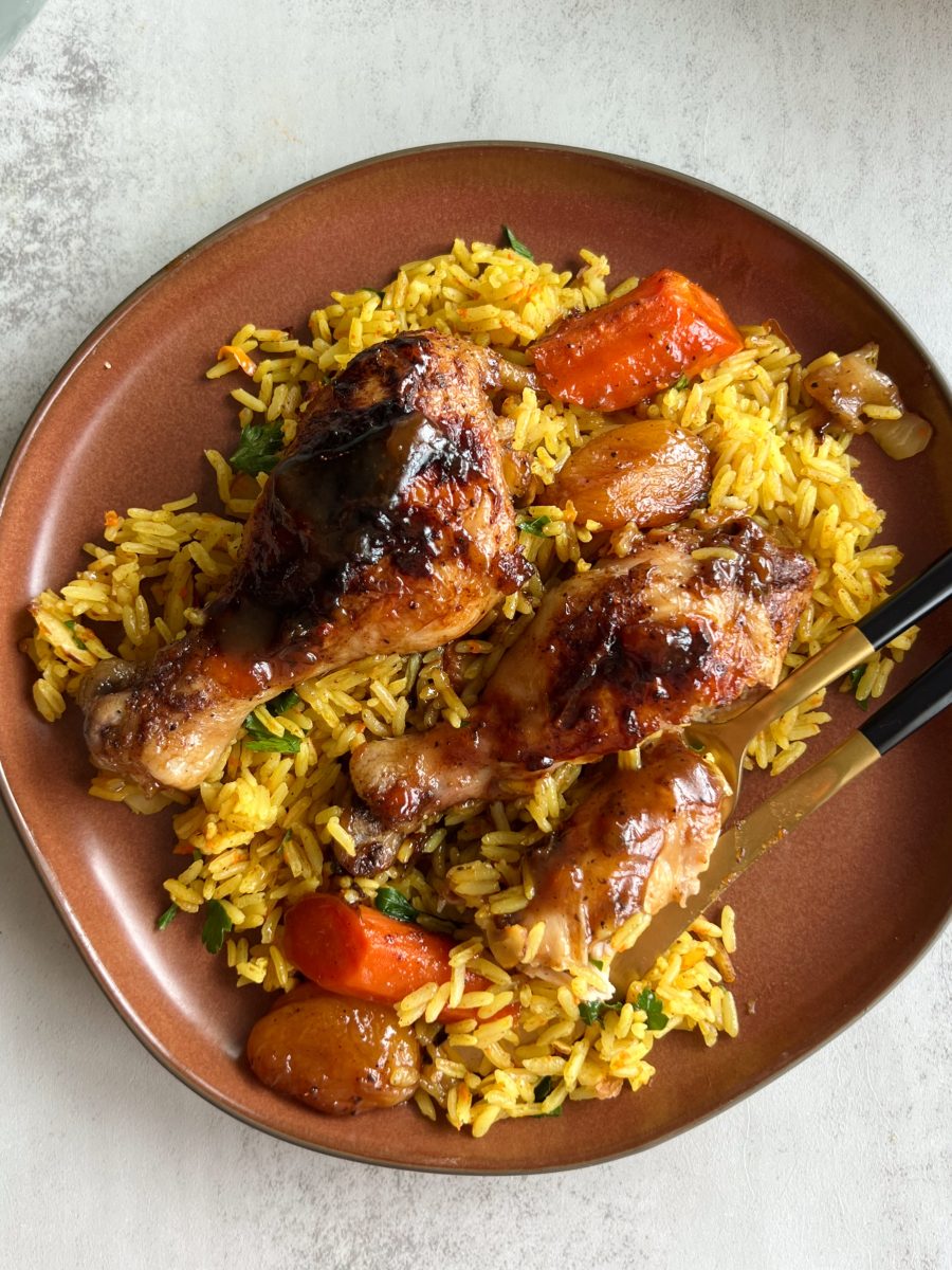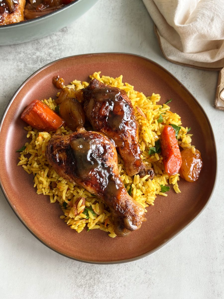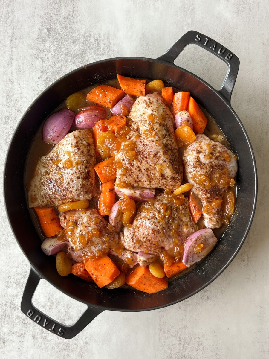 I prepared this using bone-in chicken thighs and drumsticks, and added in some carrots and shallots as a side. I loved it over my carrot & orange zested rice for a flavor-packed dinner.