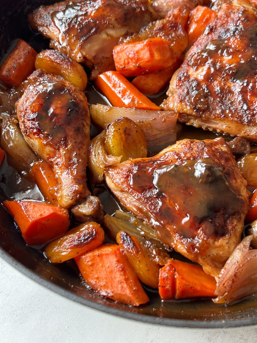 Hi Anne, so sorry I didn’t see this sooner. You can definitely make this with chicken breast. I suggest searing the chicken breast in the pan on both sides, then removing it from the pan and tossing the carrots and shallots into that same oil with salt & pepper. Roast the veggies alone in the oven for 12-15 minutes, and then add back the chicken and marinade and finish cooking for 25-30 minutes until cooked through.