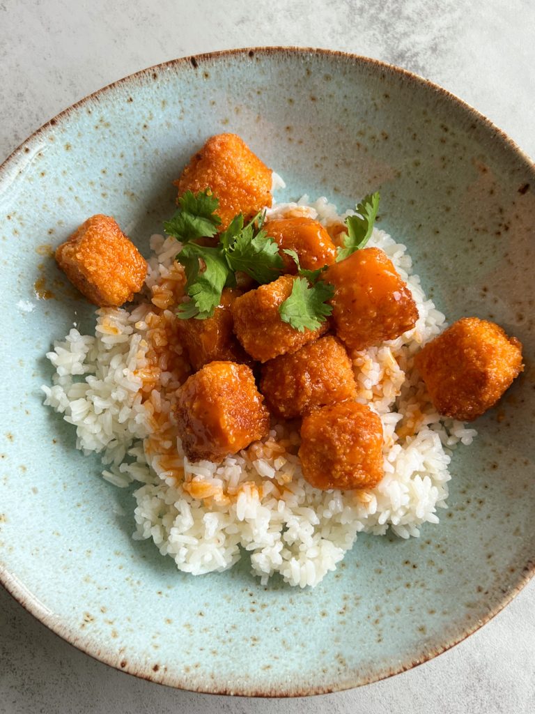 - Once ready, top with lime zest, fresh lime juice and a generous drizzle of hot honey. Serve over rice with your favorite veggie side.