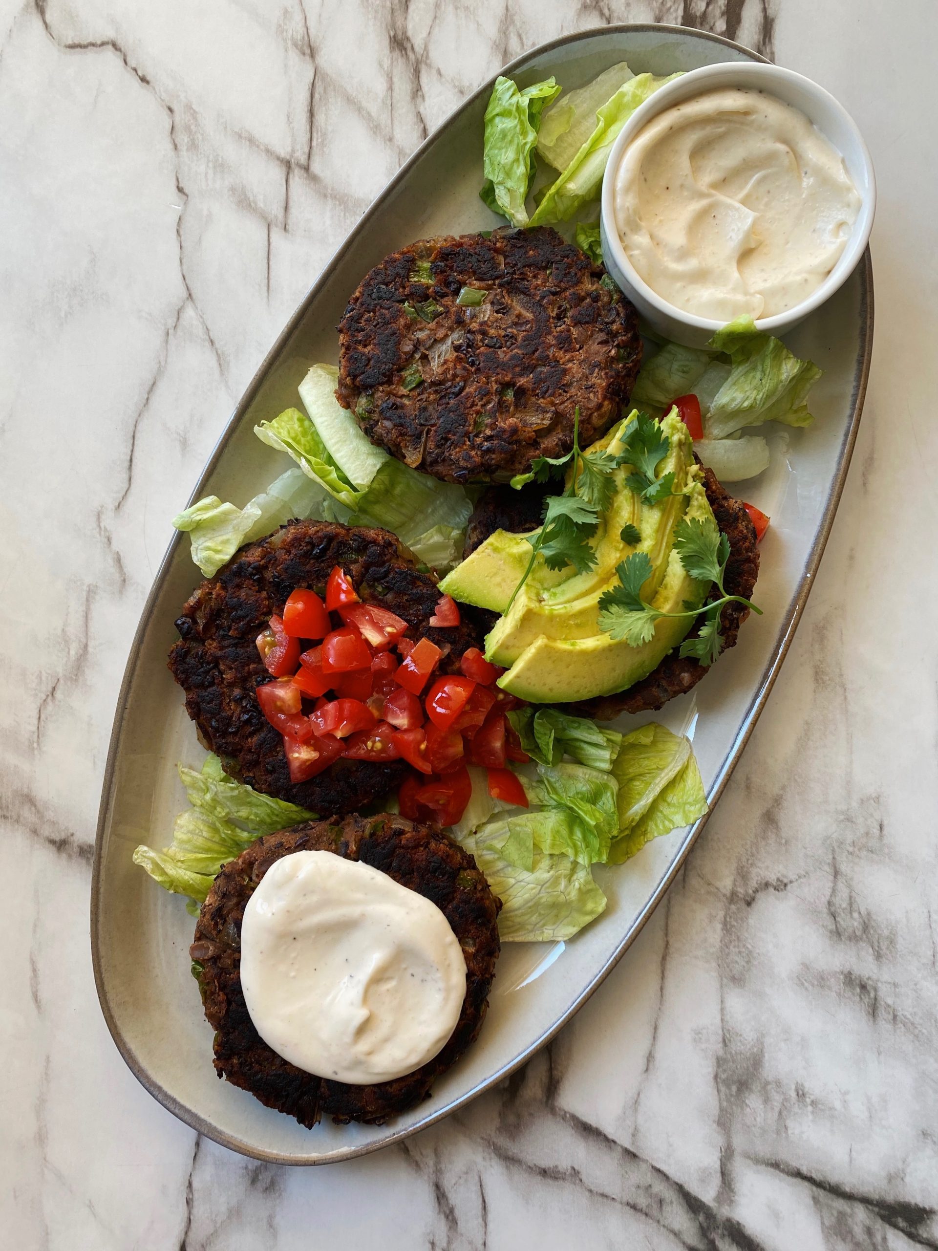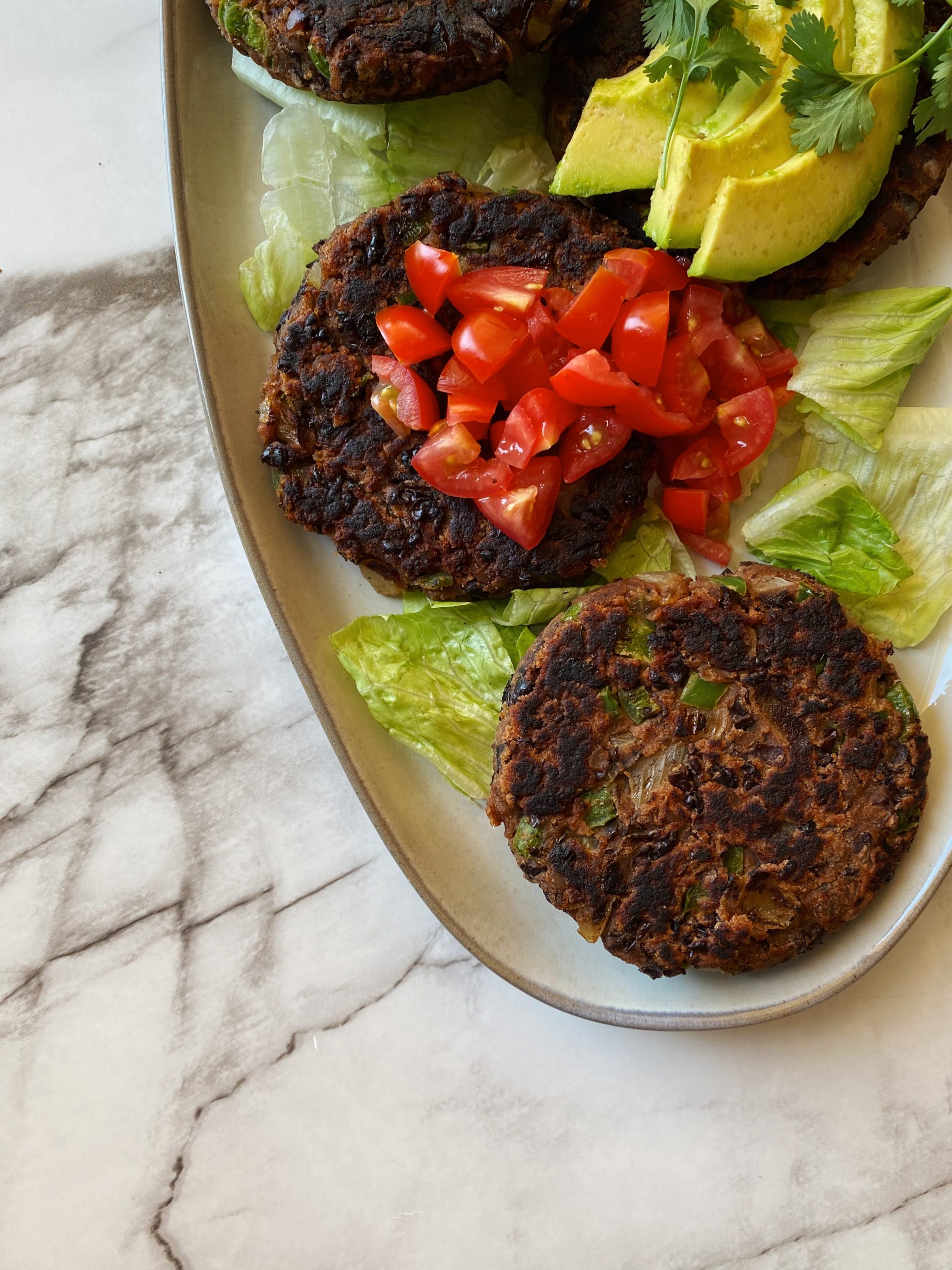 Mash the black beans in a bowl and mix them together with the remaining ingredients, refrigerate for 15-20 minutes, form into patties and grill when ready to serve!