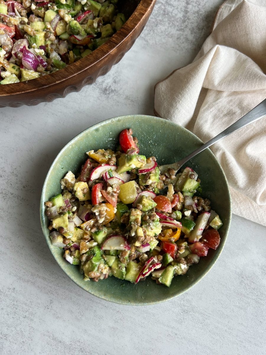This lentil salad is a delicious way to pack in fiber, micronutrients, and heart-healthy fats and is an easy summer side dish to enjoy throughout the week.