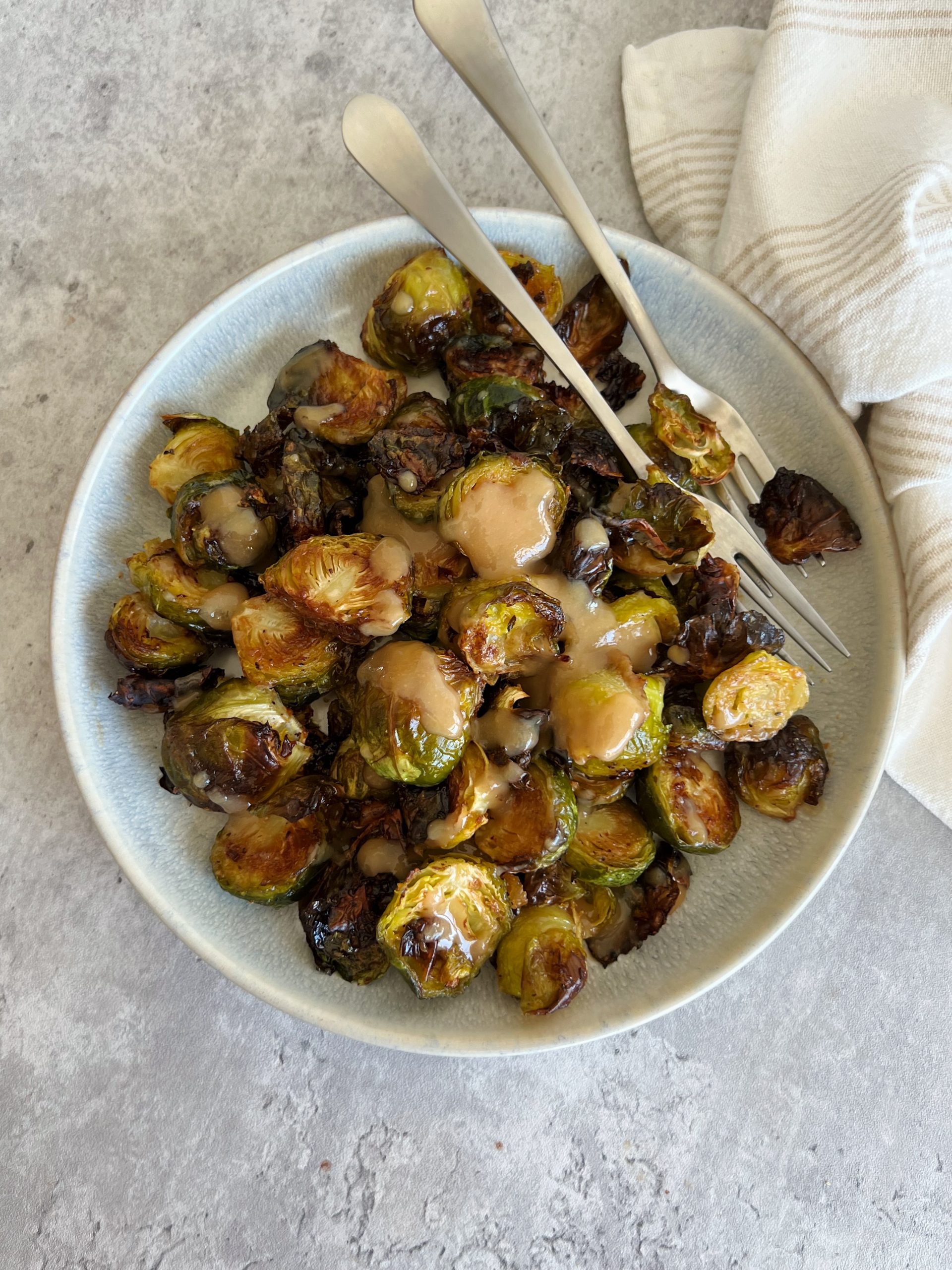 The most delicious miso roasted brussels sprouts! This simple recipe is the perfect side dish to any meal, and helps you up your veggie game in the most flavorful way.