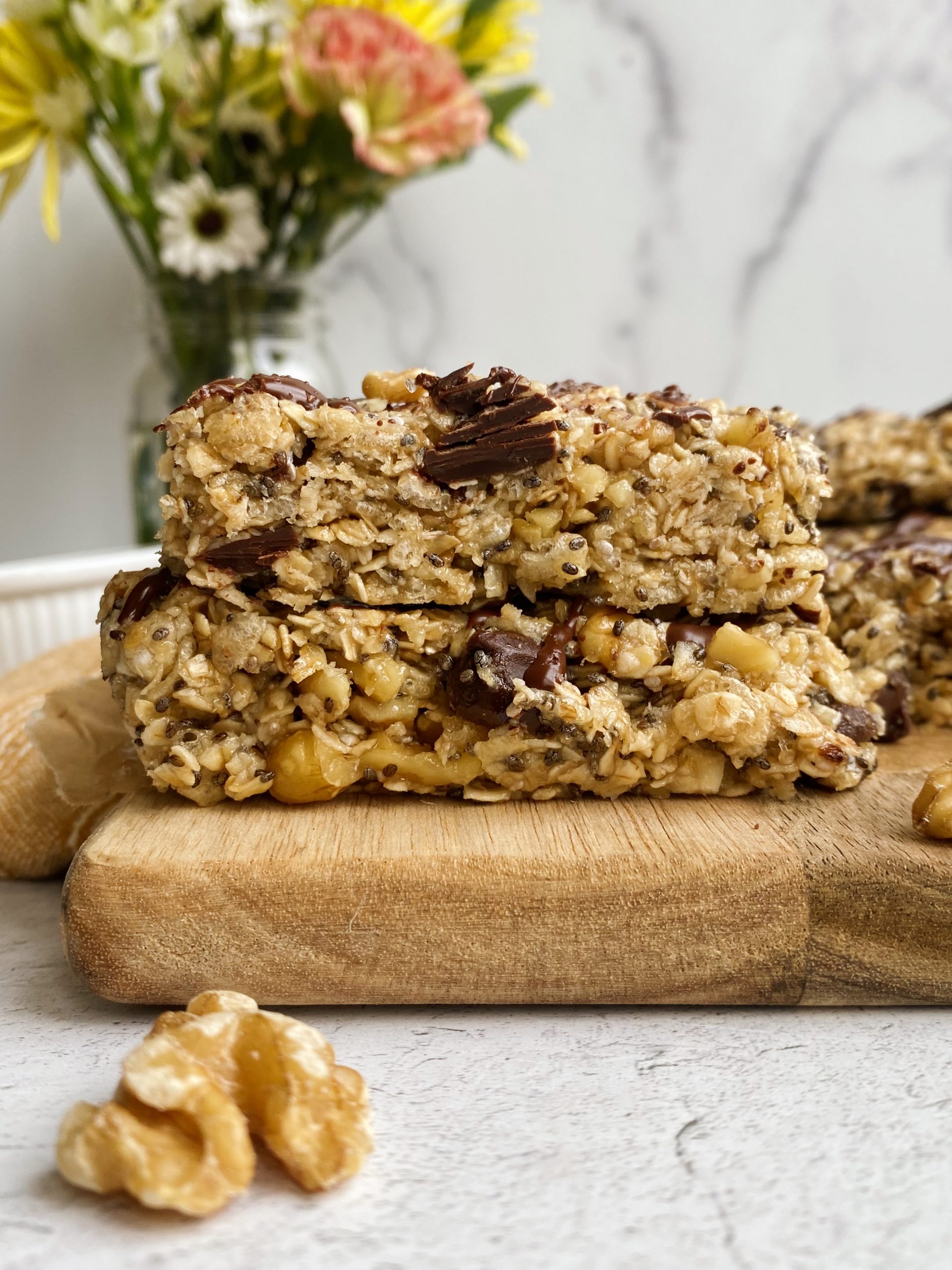 No-bake Dark Chocolate & Walnut Granola Bars
