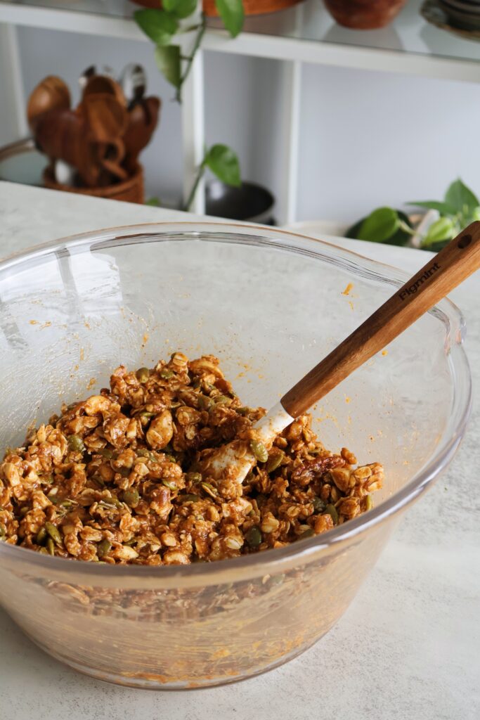 - Nuts and seeds– you’ll need 1 1/2 cups total. I used a mix of roasted cashews, pecans, walnuts and pumpkin seeds- all roughly chopped