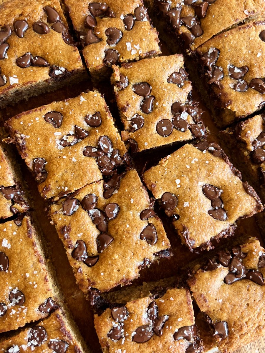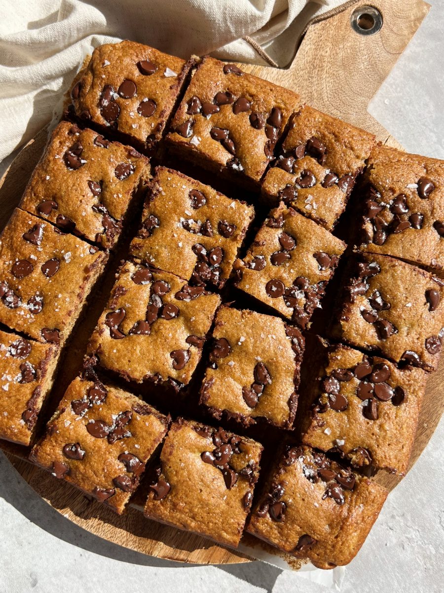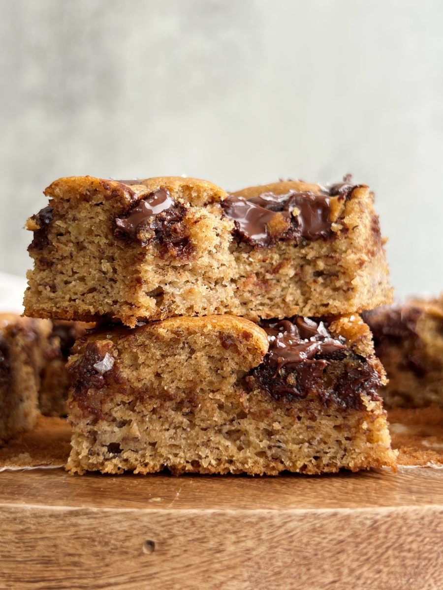 These olive oil banana bread bars are light and fluffy, with the perfect amount of chocolate chips in every bite. They’re made with just 10 simple ingredients and come together so easily.