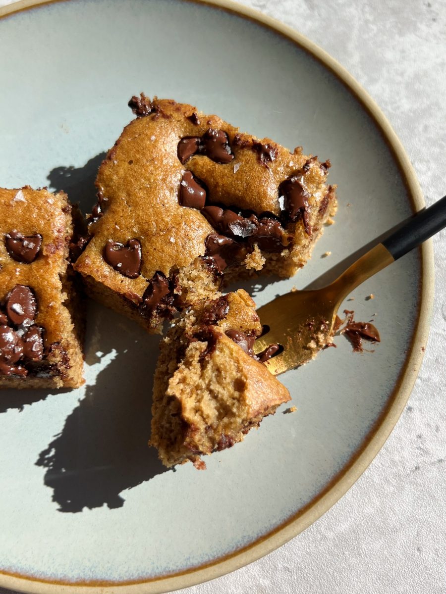 Chocolate chip olive oil banana bread bars are gluten-free, dairy-free, and the perfect little sweet snack to make for the week.