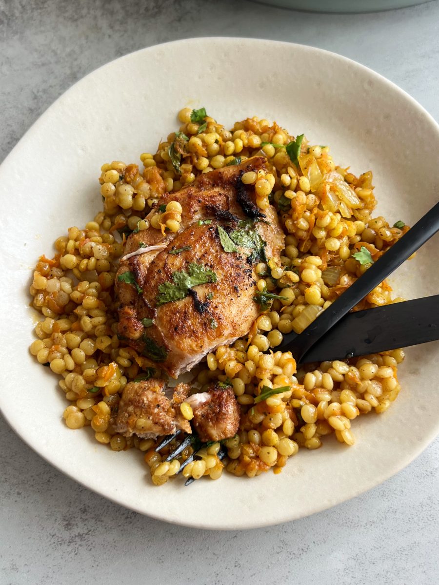 Pearl couscous, aka Israeli couscous– pearl couscous is a pantry staple of mine for an easy carb source during the week