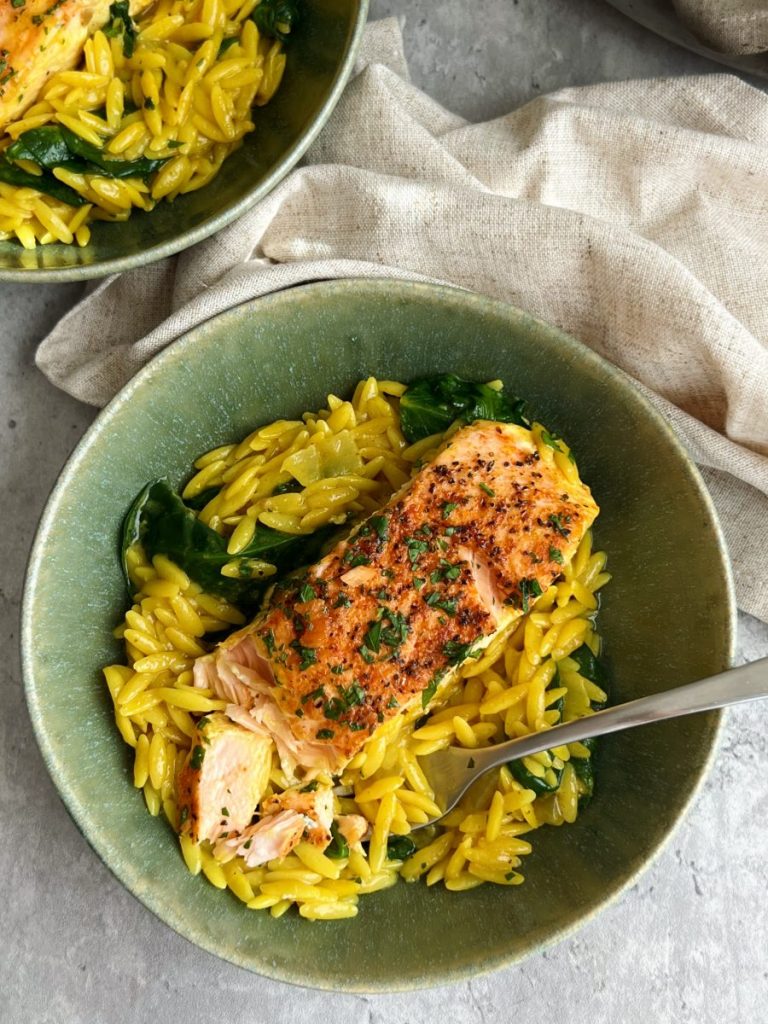 2-If you prefer to have your salmon fully cooked through before adding it back into the orzo, you can cook each side for about 5-6 minutes on medium heat during step 1